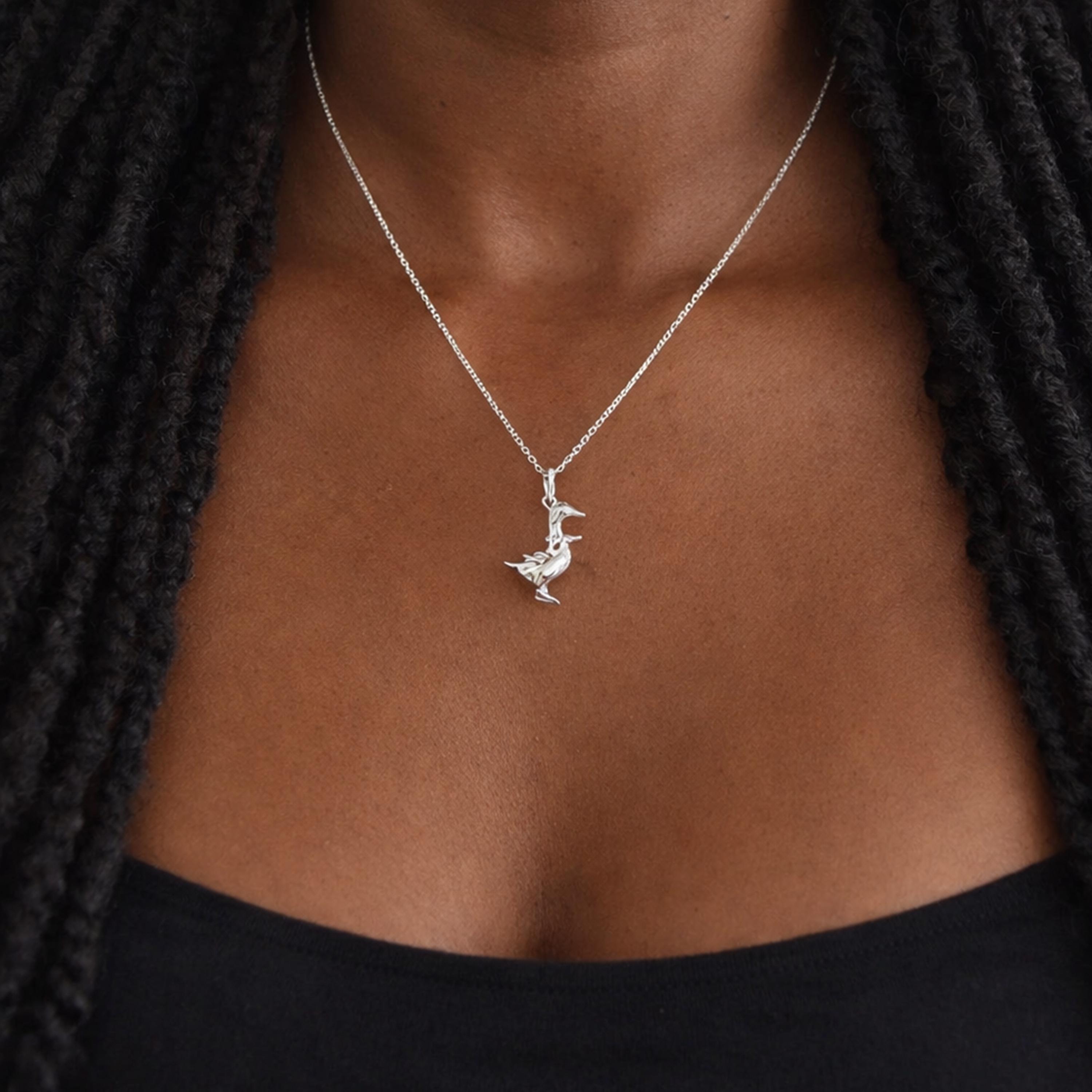 Perfect as a Mother Goose necklace, sterling silver animal pendant, sentimental heart charm jewellery piece, or meaningful gift for her, this design blends charm with lasting symbolism.