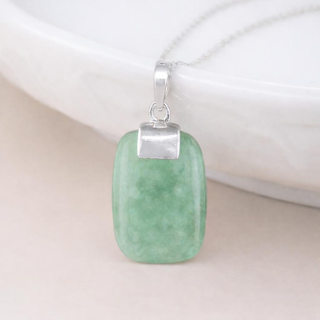 A bold green jade pendant in solid sterling silver — personalise it with an engraved disc to make it a meaningful gift or a mindful keepsake.
