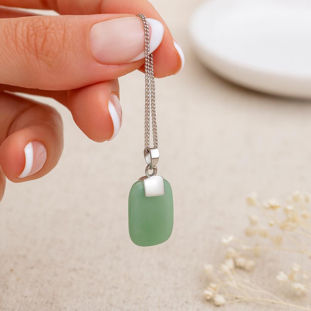 Grounding, gentle, and eternally soothing — this polished green jade pendant is set in solid 925 sterling silver. Known for promoting harmony and balance, jade makes a meaningful gift for birthdays, spiritual celebrations, or as a protective charm.