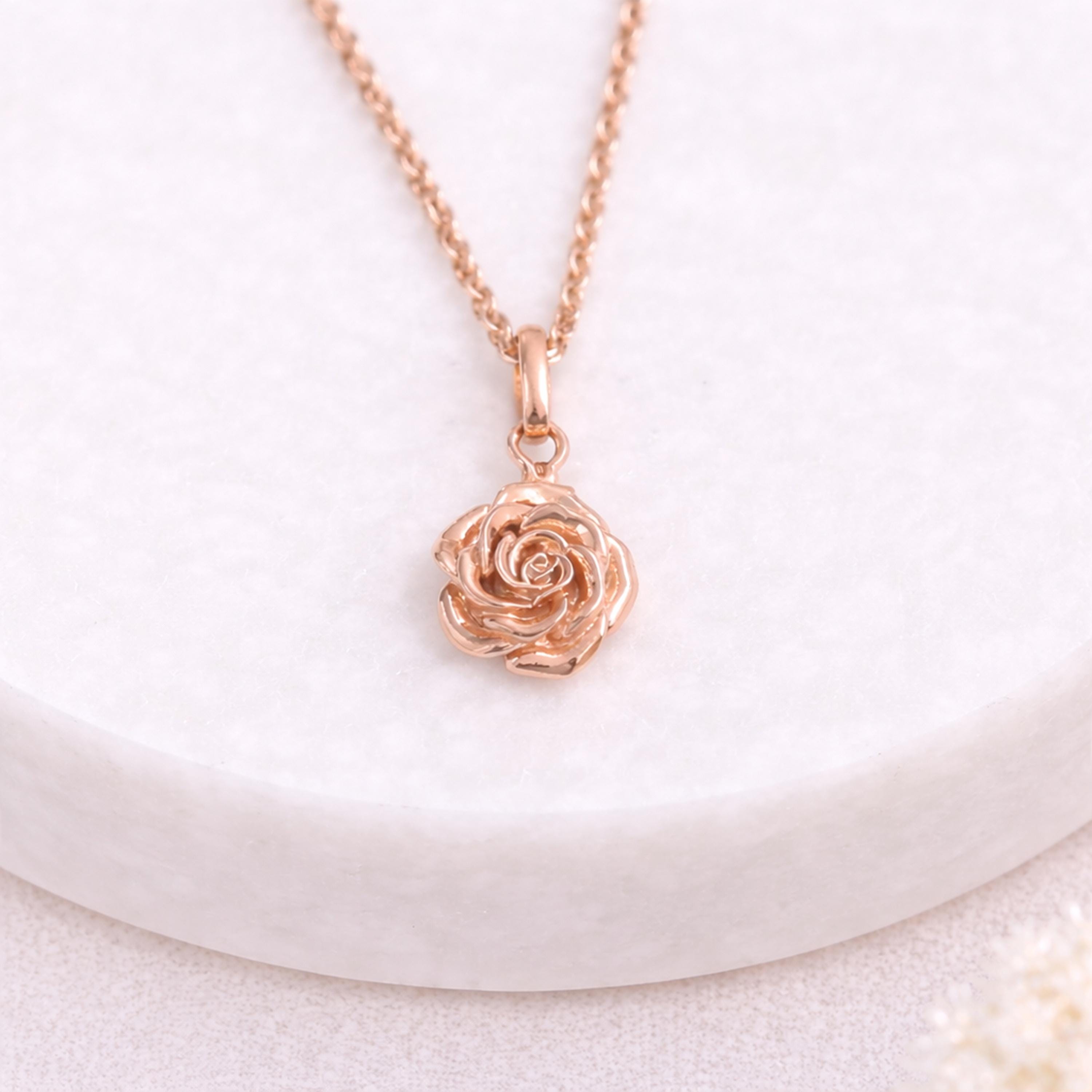 Ideal as a rose necklace, romantic gift, anniversary keepsake, or personalised jewellery piece, this pendant combines timeless symbolism with elegant craftsmanship in a design made to be treasured.