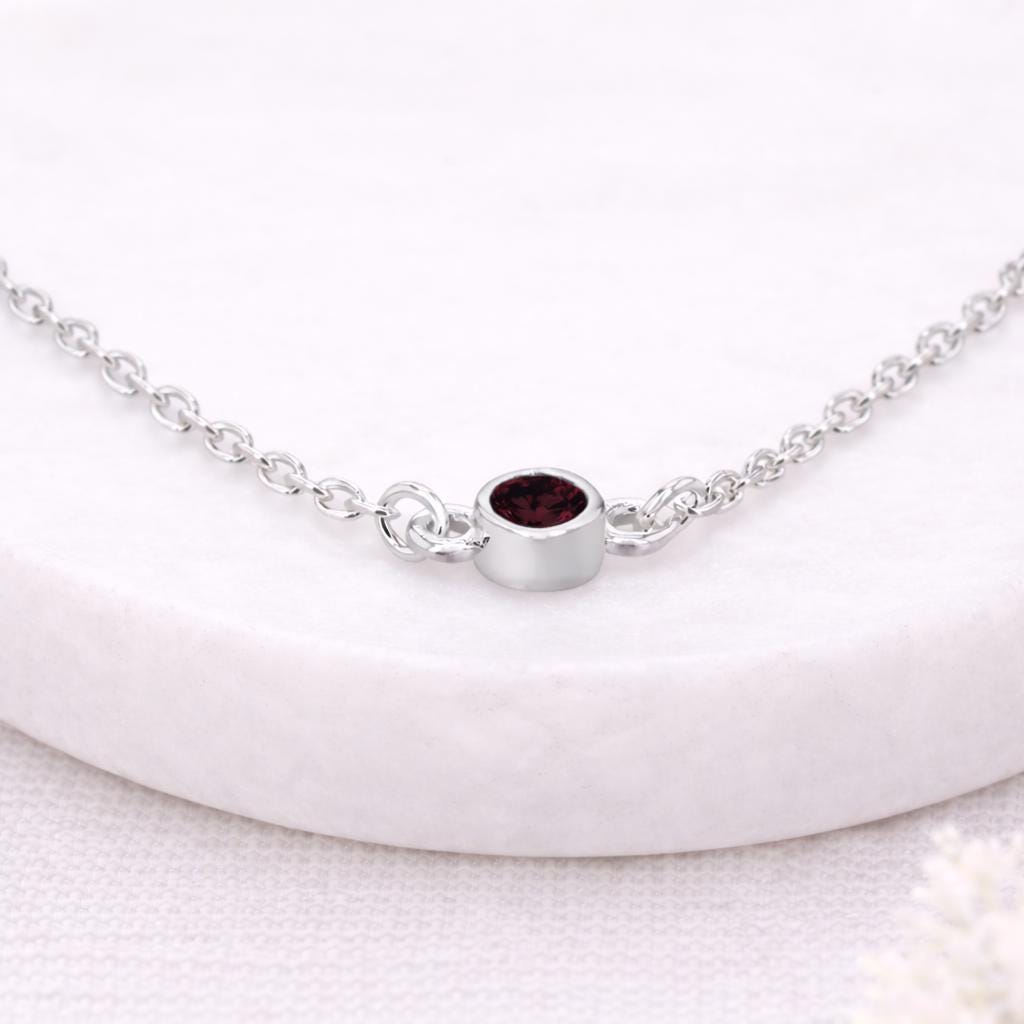 This delicate garnet birthstone bracelet is made from solid 925 sterling silver, featuring a single garnet-coloured cubic zirconia charm centred on a fine adjustable chain.