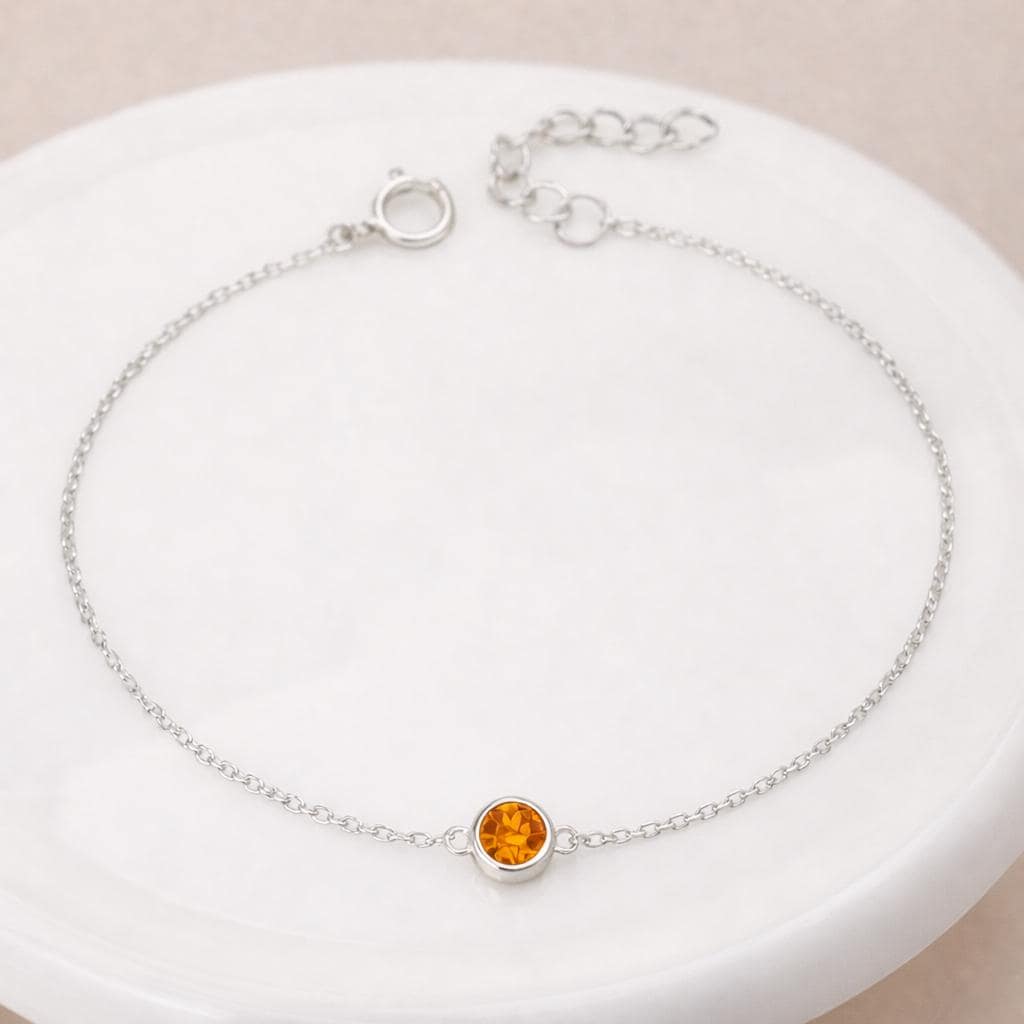 Perfect as a November birthstone bracelet, citrine inspired jewellery, sterling silver personalised bracelet, birthday gift, or meaningful anniversary present, this design blends warm colour with timeless simplicity.
