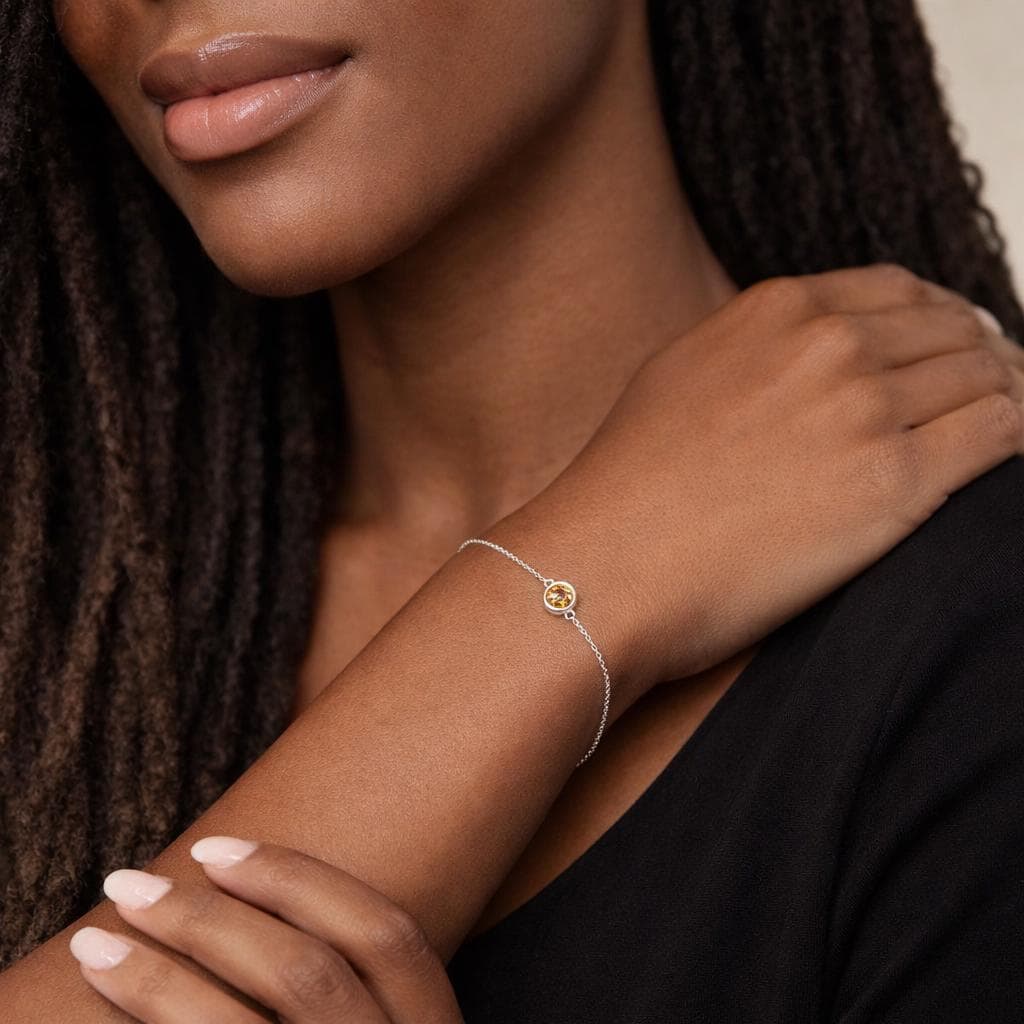 This November Birthstone Bracelet is crafted from solid 925 sterling silver and set with a warm citrine coloured cubic zirconia, inspired by November’s traditional birthstone. Bright and uplifting, it features a single bezel set charm at the centre for a clean, minimalist finish with a beautiful golden glow.