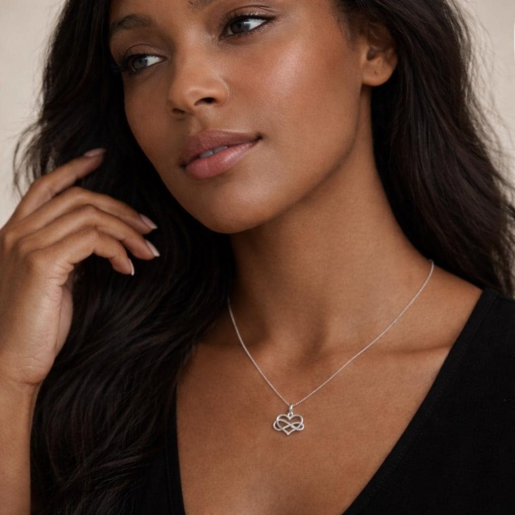 ♡ Style Tip: Pair this infinity heart necklace with a simple silver chain or layered necklaces for a soft, romantic look, or wear it alone as a meaningful statement piece.