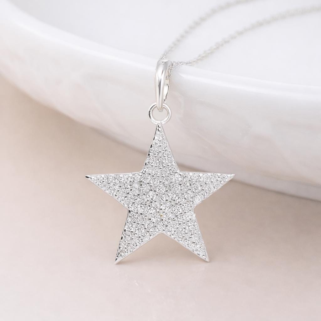 Perfect as a sterling silver star necklace, cubic zirconia pendant, celestial jewellery piece, or thoughtful personalised gift, this design blends classic symbolism with modern brilliance.