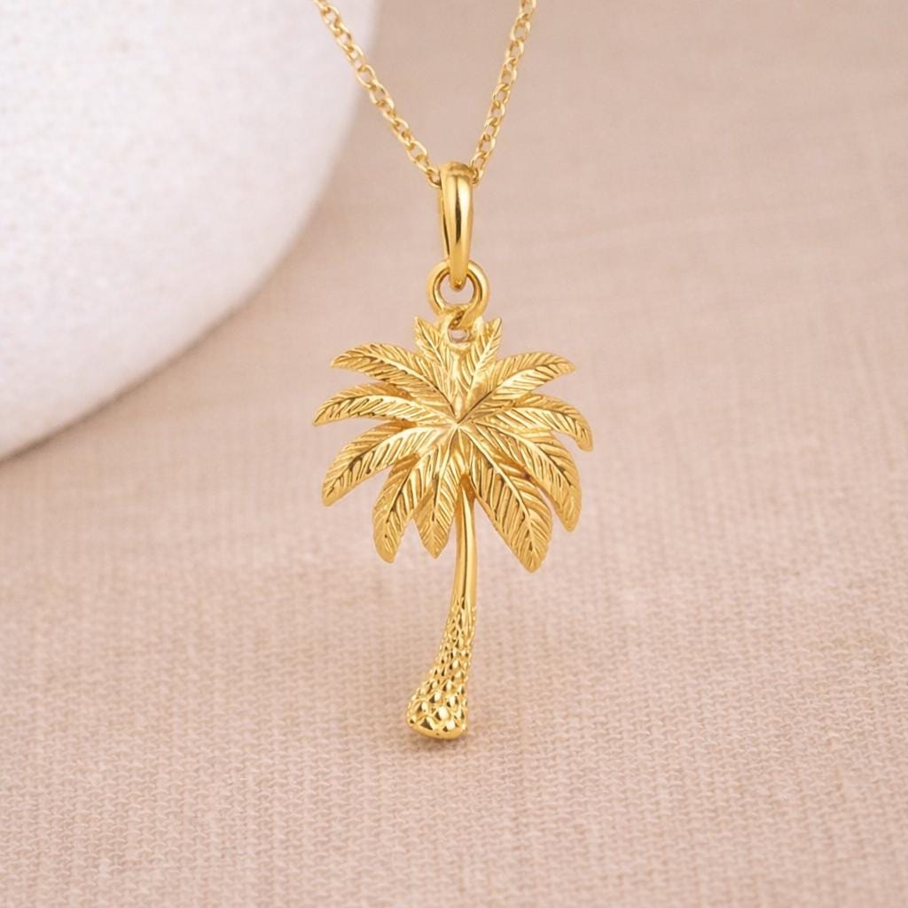♡ Style Tip: This palm tree necklace looks beautiful worn with summer dresses or open necklines, and layers effortlessly with shorter gold chains for a relaxed, sun kissed look.