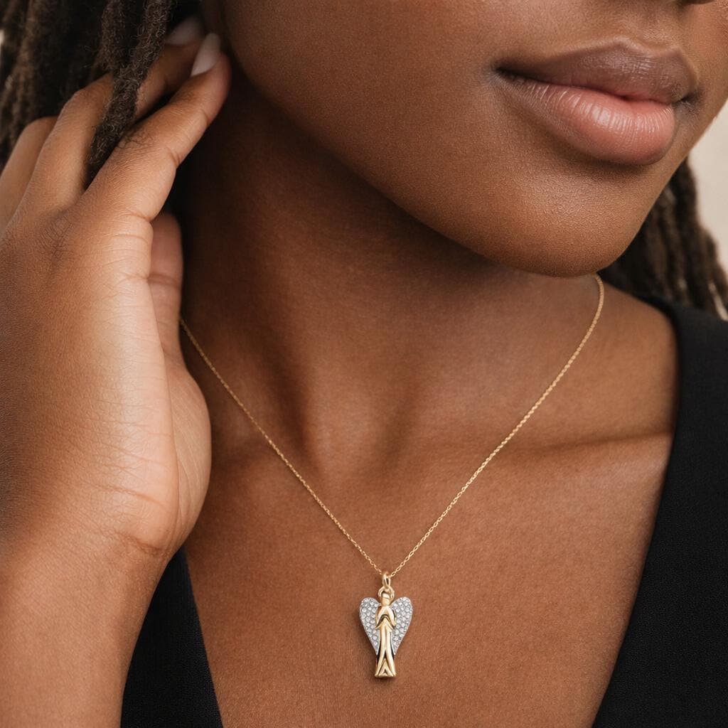 ♡ Style Tip: Wear this angel pendant on its own as a meaningful everyday piece, or layer it with a fine gold chain to create a delicate layered look while keeping the pendant as the centre of attention.