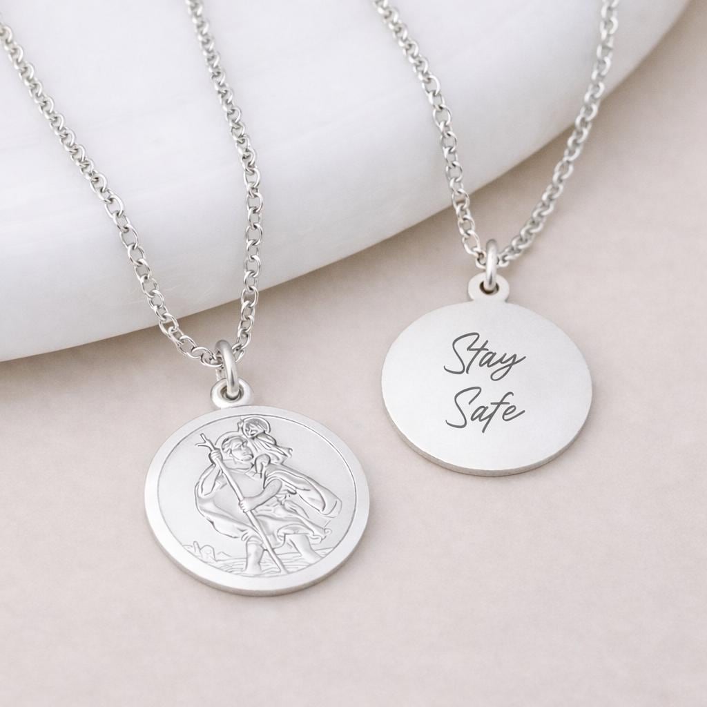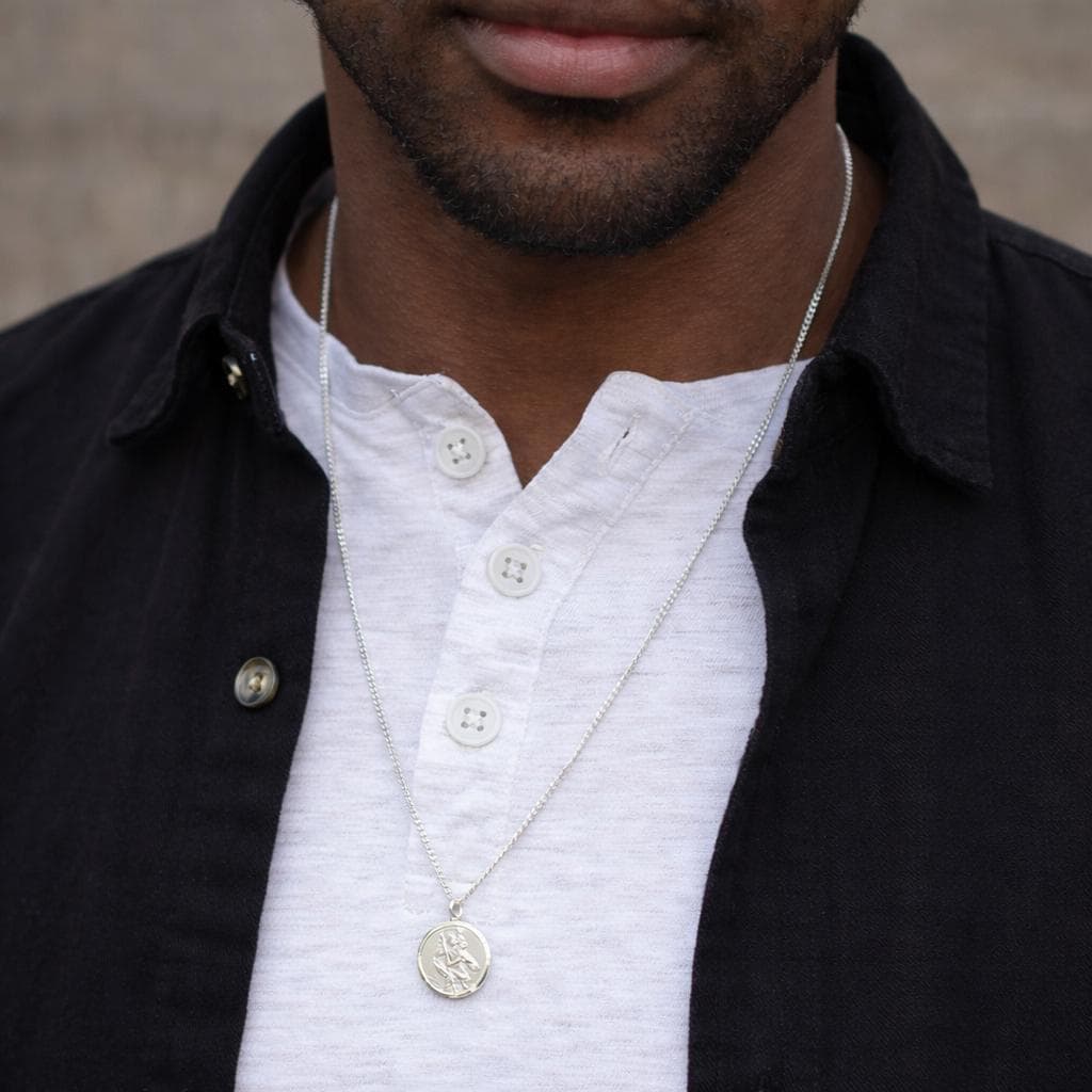 St Christopher is widely known as the patron saint of travellers, making this pendant a meaningful keepsake for journeys both near and far. The detailed relief sits within a smooth circular frame, giving the necklace a timeless look that feels reassuring, wearable, and full of sentiment. Finished with a polished shine, it’s a piece designed to be worn every day as a quiet source of comfort.