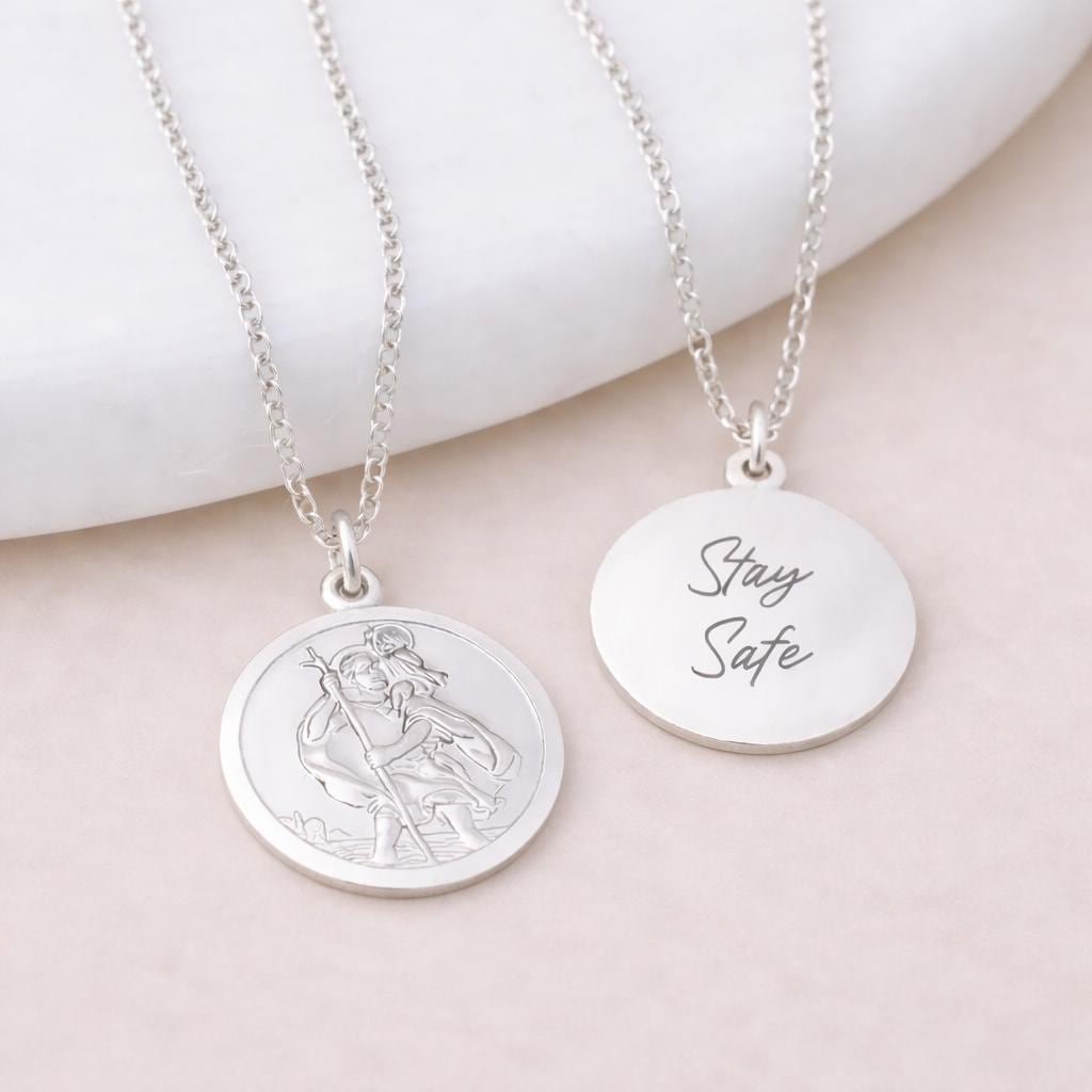Perfect as a St Christopher necklace, travel protection pendant, or personalised gift, this piece combines traditional symbolism with timeless sterling silver craftsmanship.
