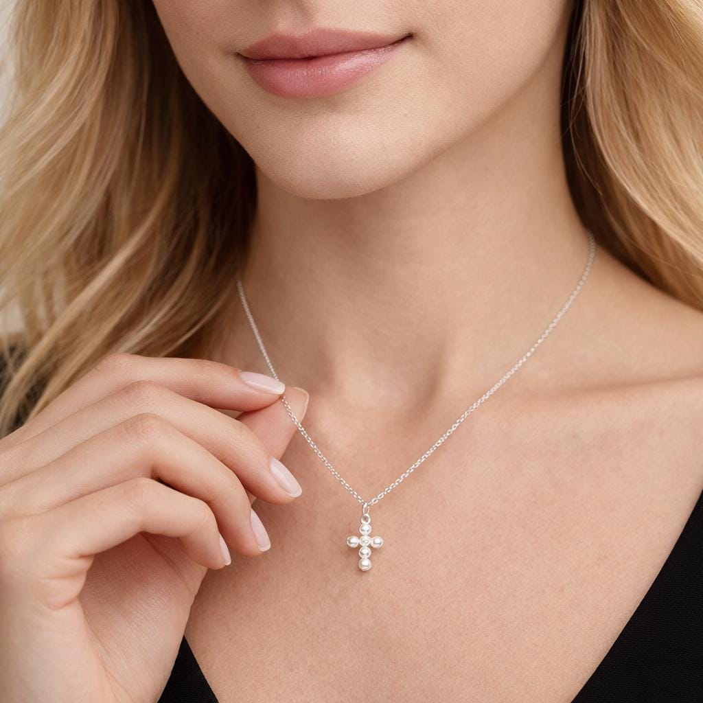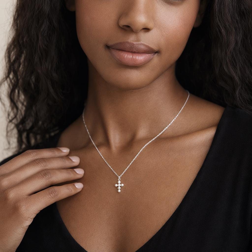 ♡ Style Tip: Wear this pearl cross necklace on its own for a simple, elegant look, or layer it with fine silver chains to create a modern, meaningful jewellery stack.