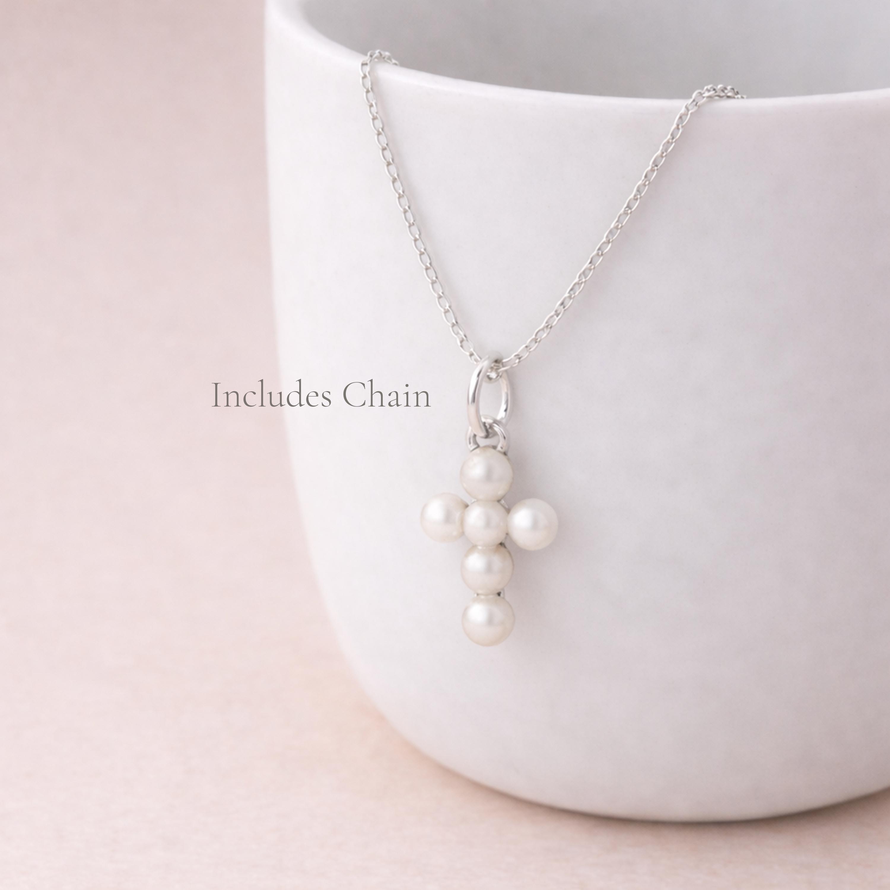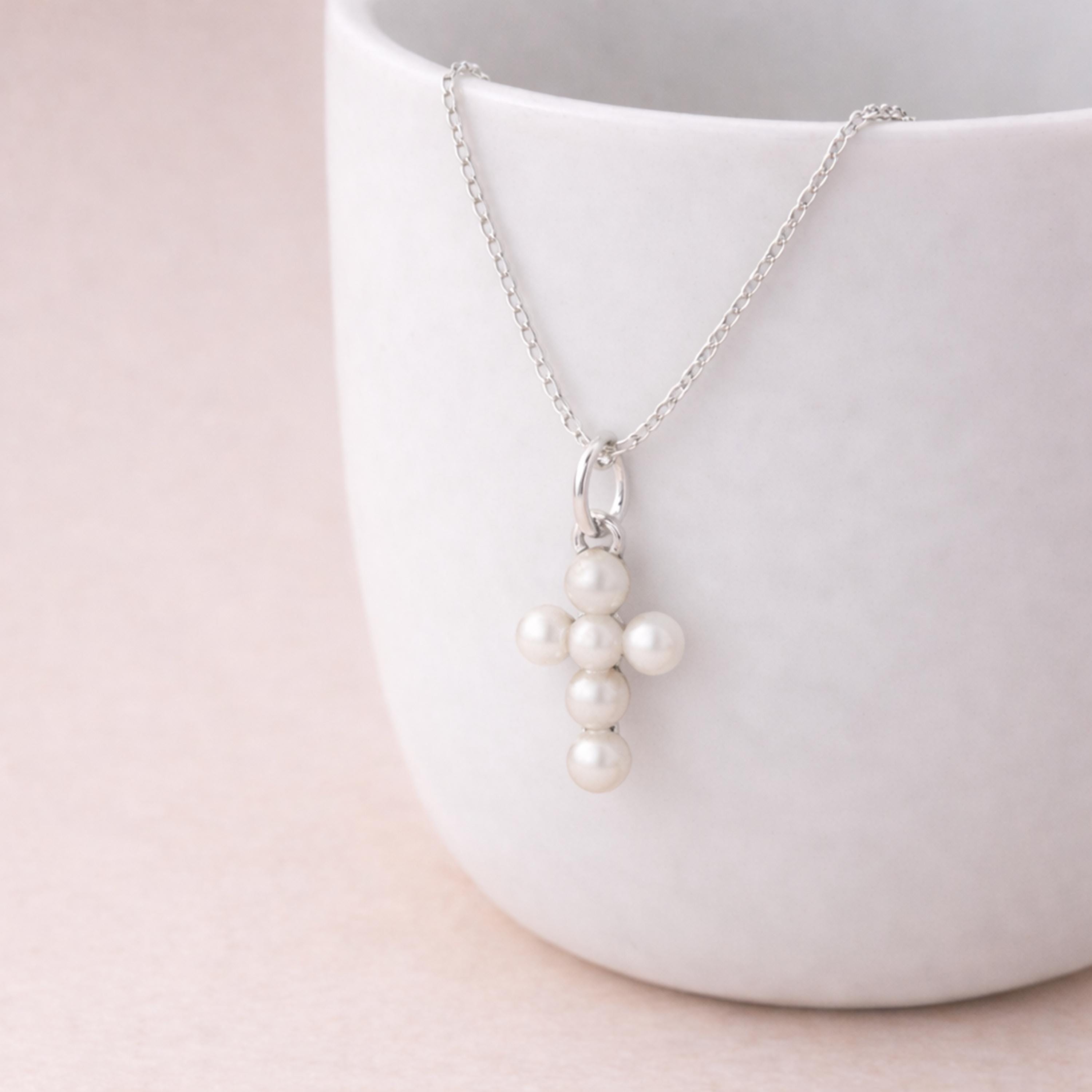 Perfect as a pearl cross necklace, christening gift, confirmation jewellery, religious pendant, or personalised keepsake, this design combines classic symbolism with soft, delicate styling.
