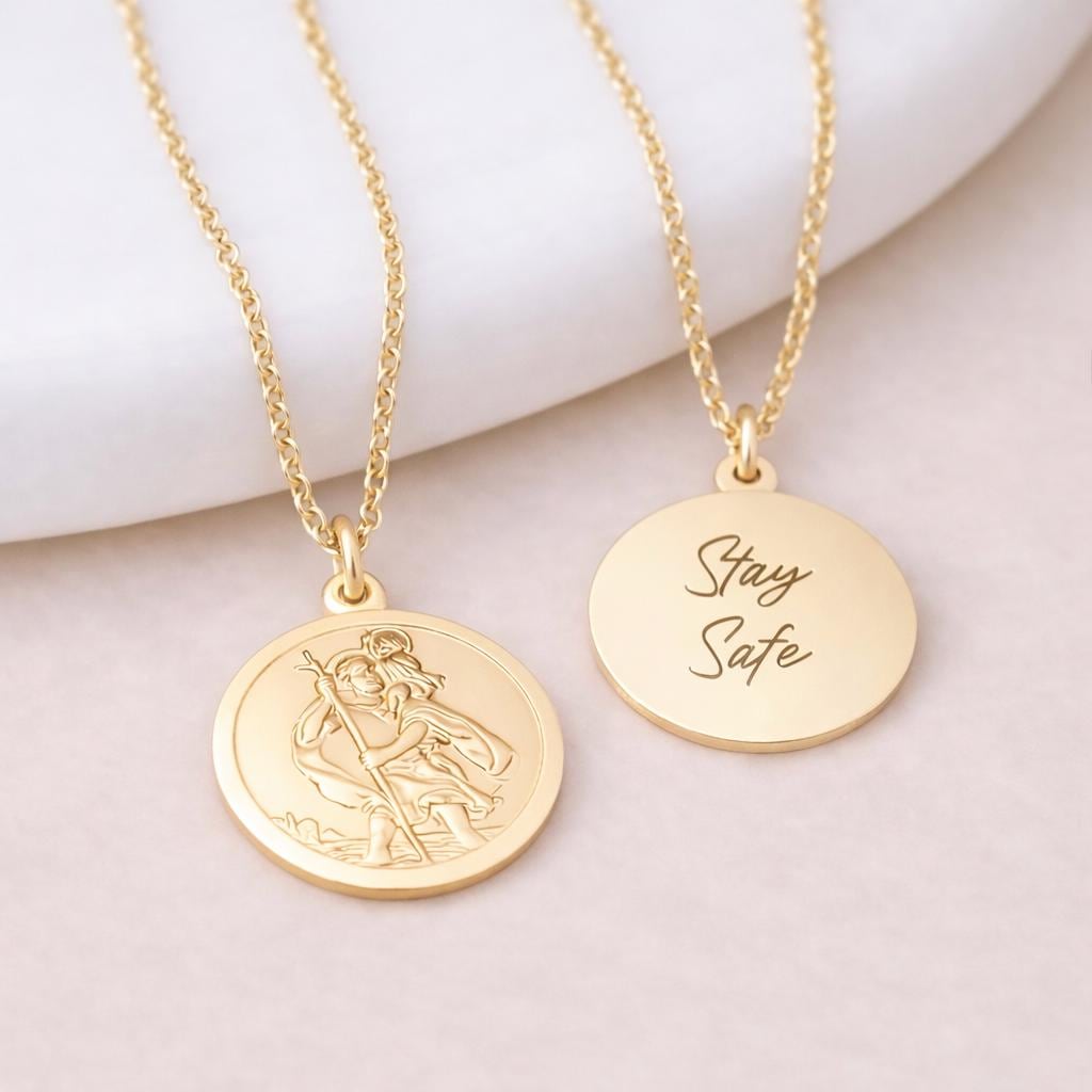 St Christopher is widely known as the patron saint of travellers, making this pendant a meaningful keepsake for journeys both near and far. The detailed relief sits within a smooth circular frame, giving the necklace a timeless look that feels reassuring, wearable, and full of sentiment. Finished with a polished shine, it’s a piece designed to be worn every day as a quiet source of comfort.