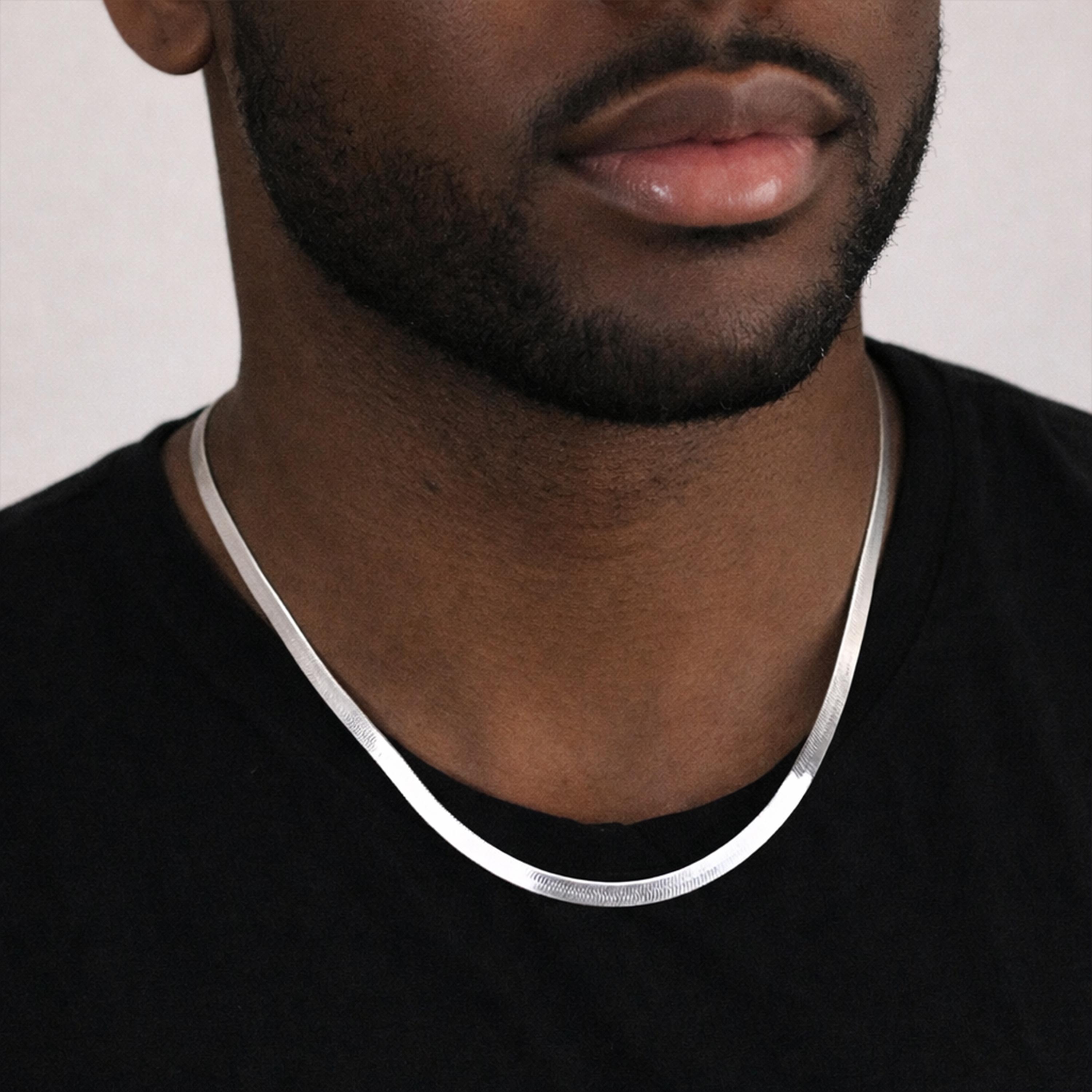 This wide herringbone chain pairs best with clean, minimal pendants, where the smooth, reflective surface of the chain enhances the overall look without competing with the design.