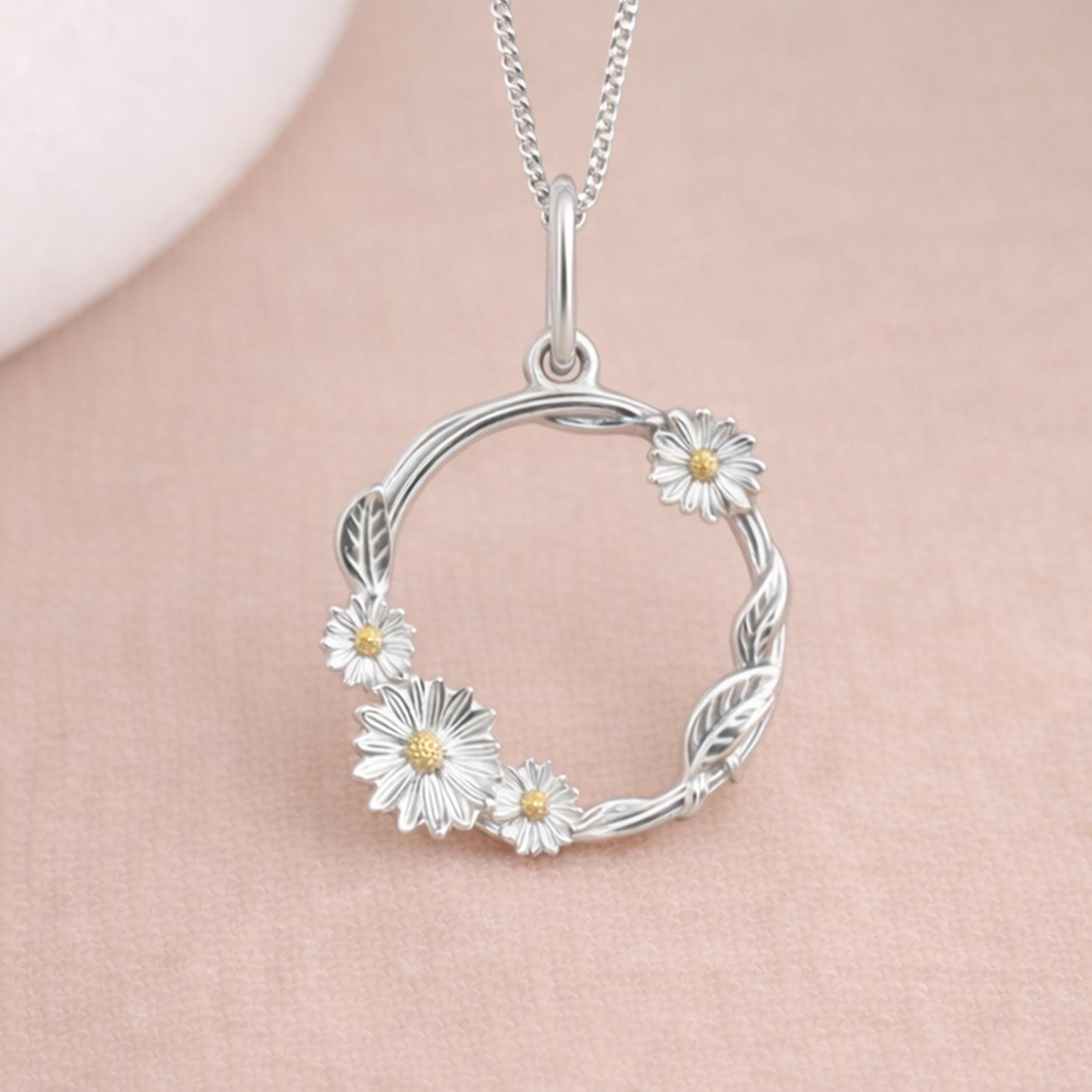 Perfect as a daisy necklace, floral wreath pendant, April birth flower inspired gift, or meaningful everyday jewellery piece, this design blends natural beauty with timeless elegance.