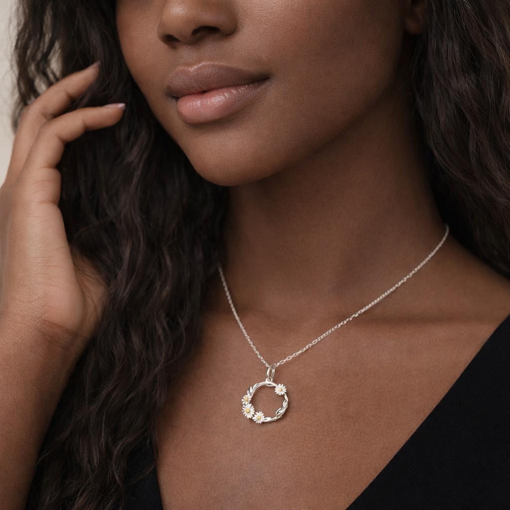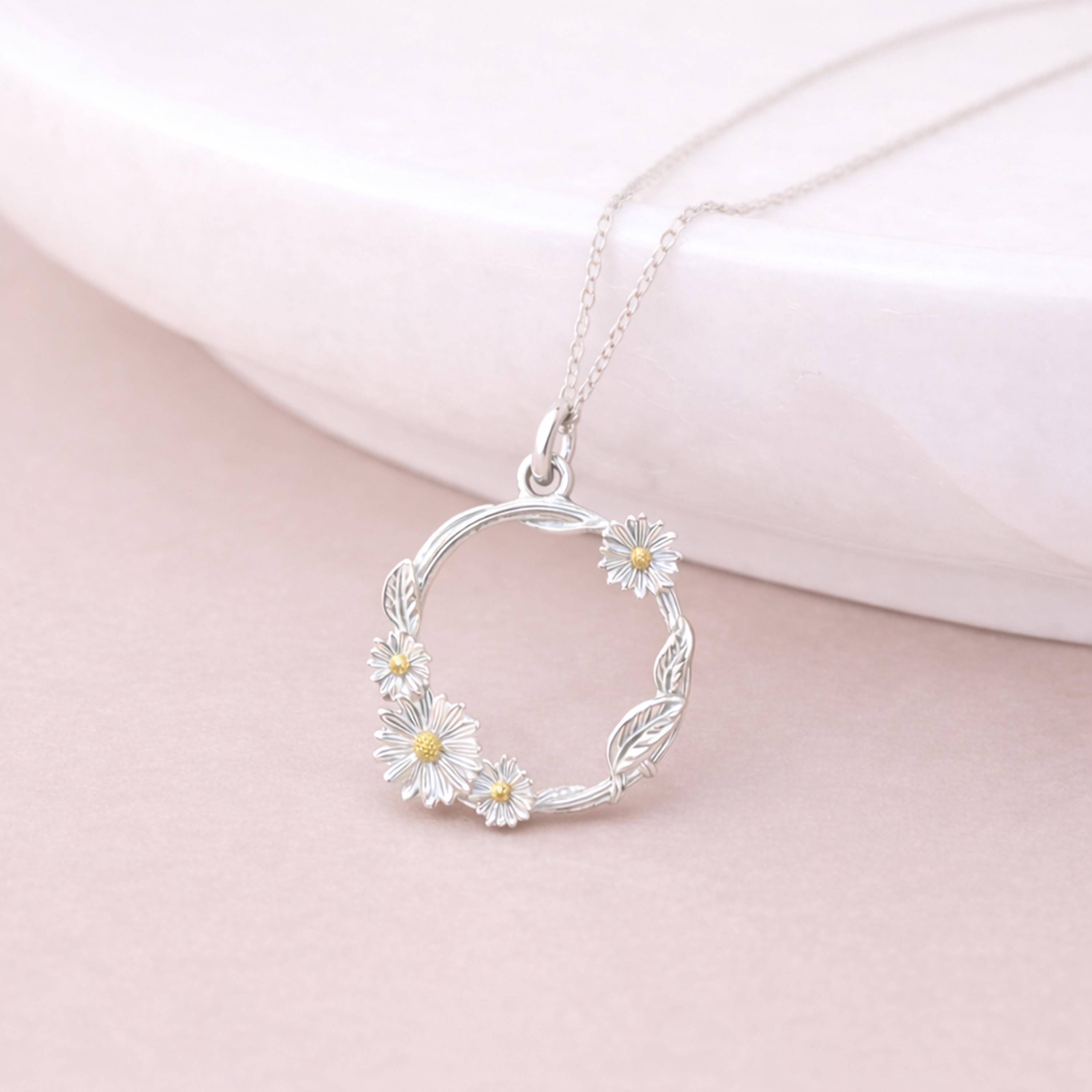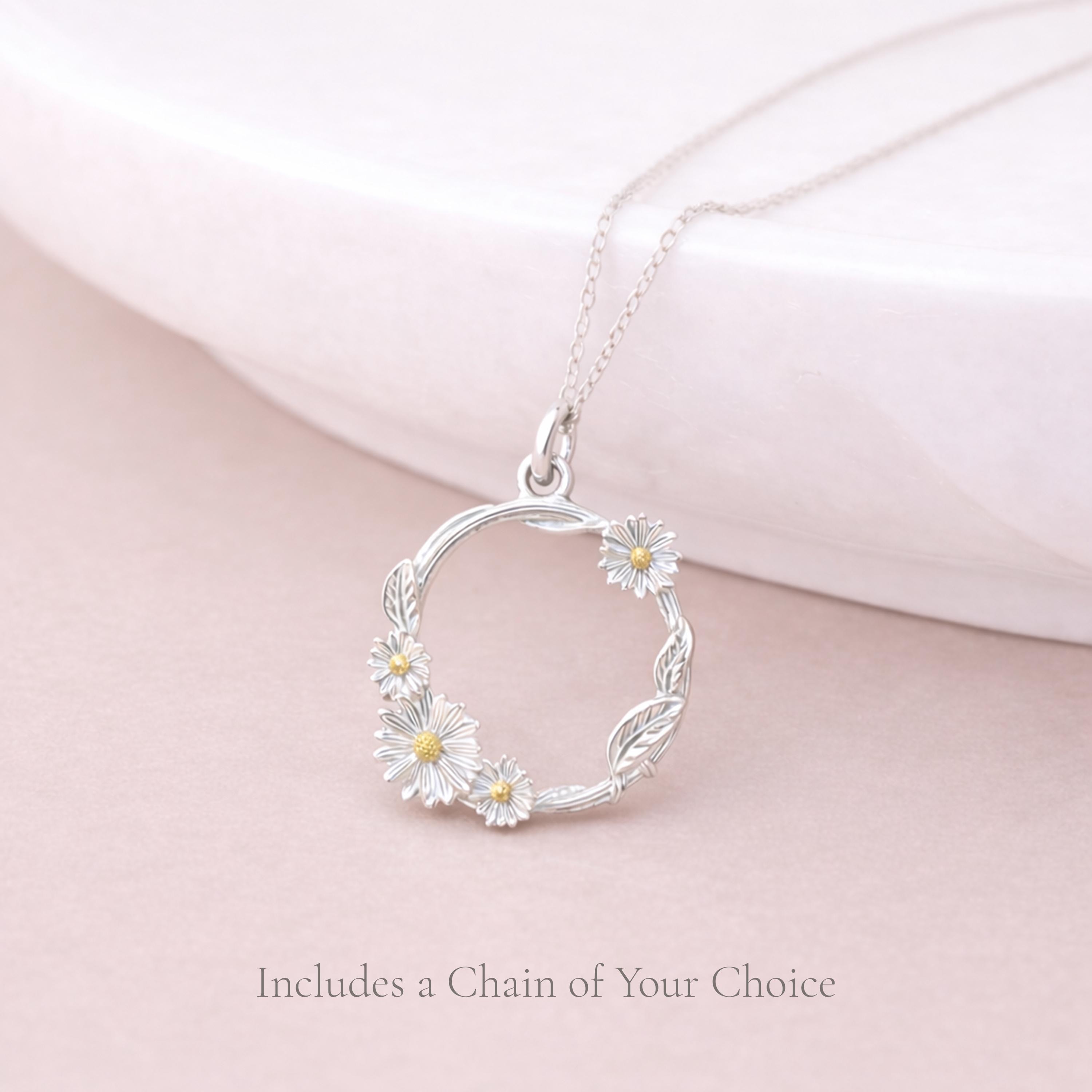 Perfect as a daisy necklace, floral wreath pendant, April birth flower inspired gift, or meaningful everyday jewellery piece, this design blends natural beauty with timeless elegance.
