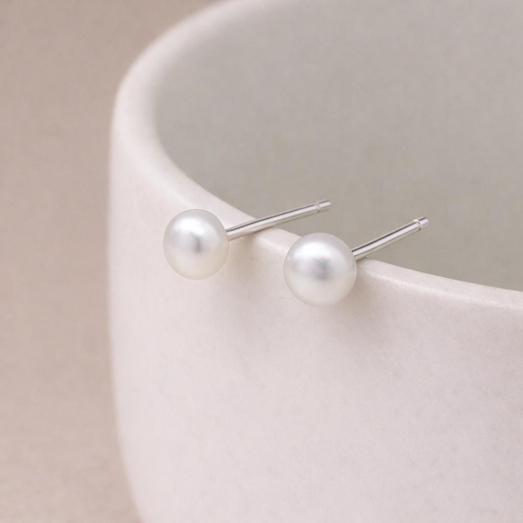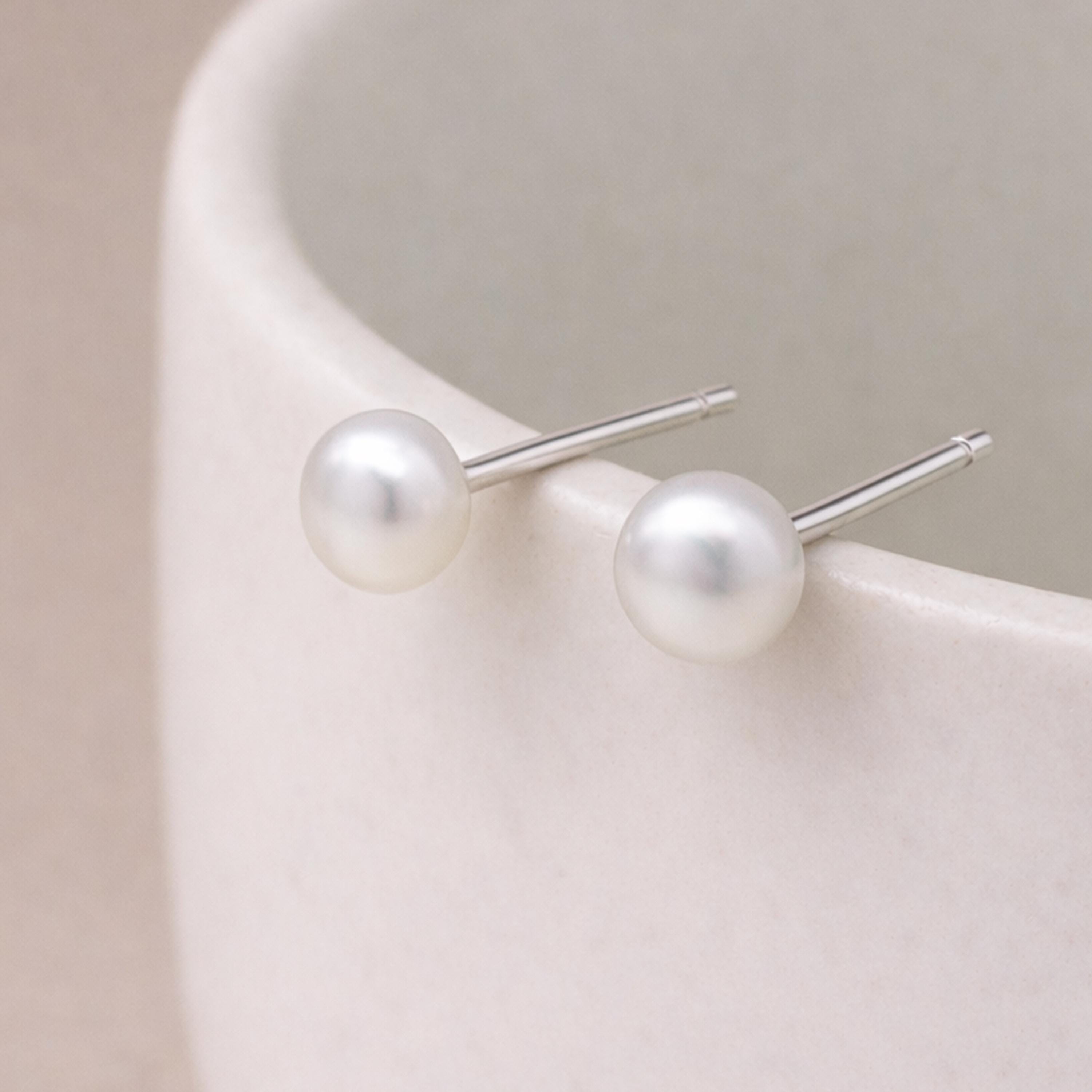 These freshwater pearl stud earrings are handcrafted from solid 925 sterling silver and finished with a classic 5mm freshwater pearl, creating a beautifully simple and timeless design.