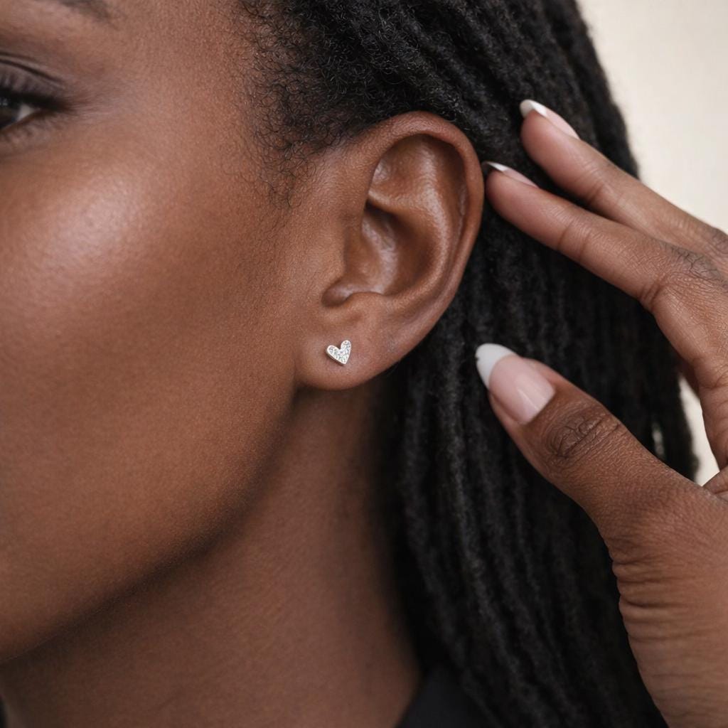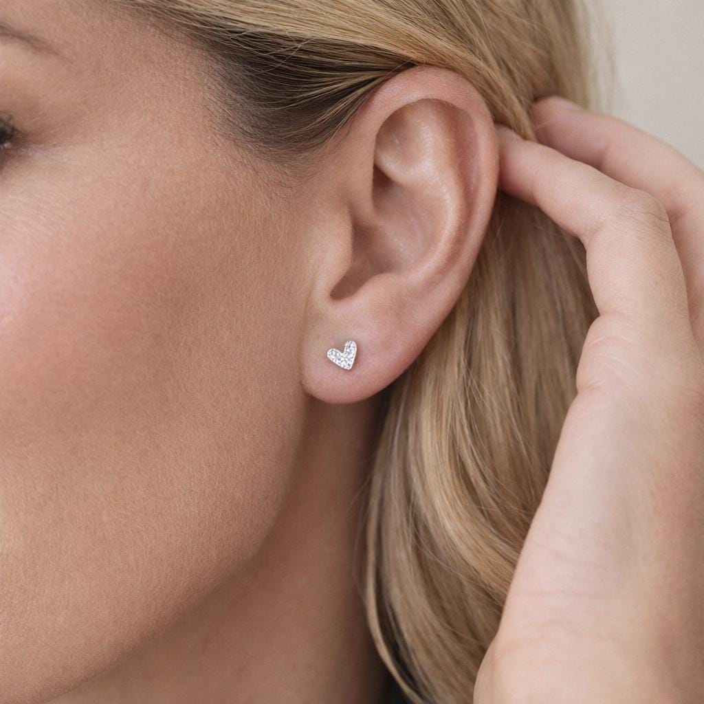 ♡ Style Tip: These heart studs look beautiful worn alone for a subtle sparkle or paired with other small silver earrings for a delicate ear stack.