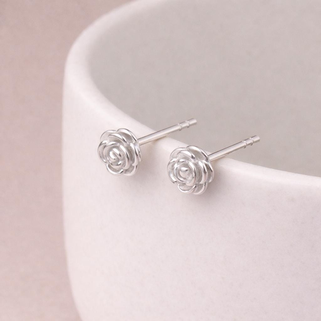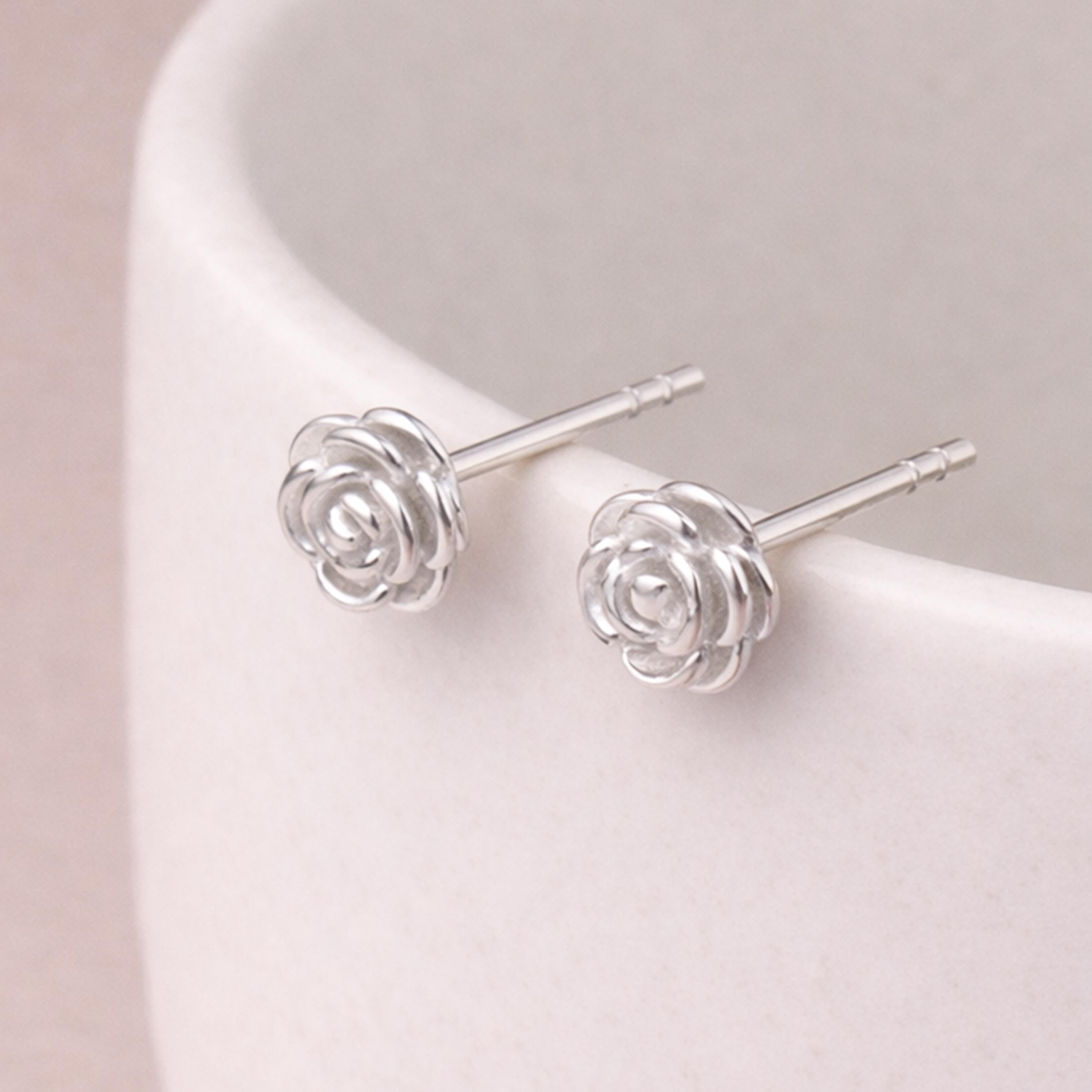 These sterling silver rose stud earrings are handcrafted from solid 925 sterling silver in a classic silver finish, featuring a softly sculpted rose design that feels timeless and full of meaning.