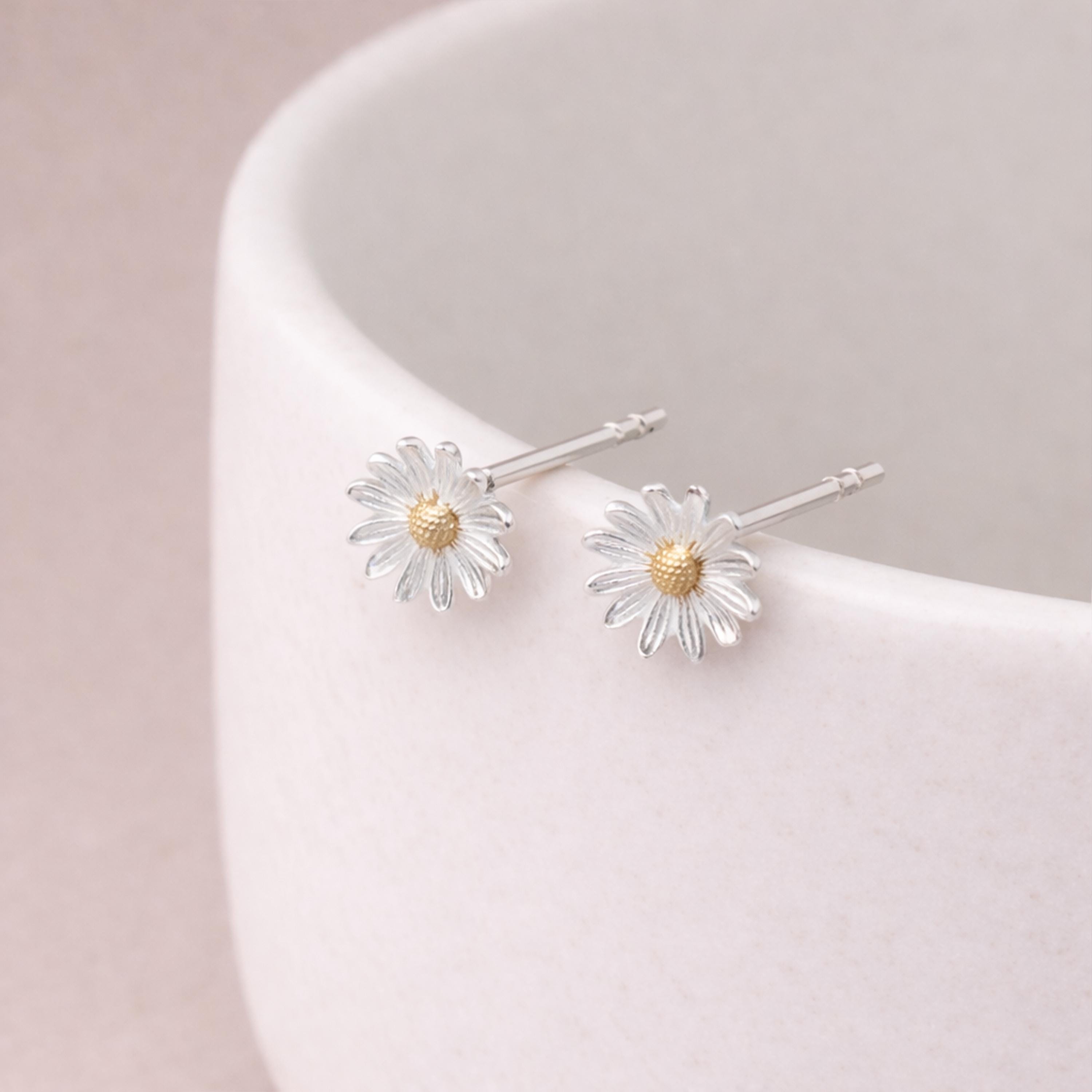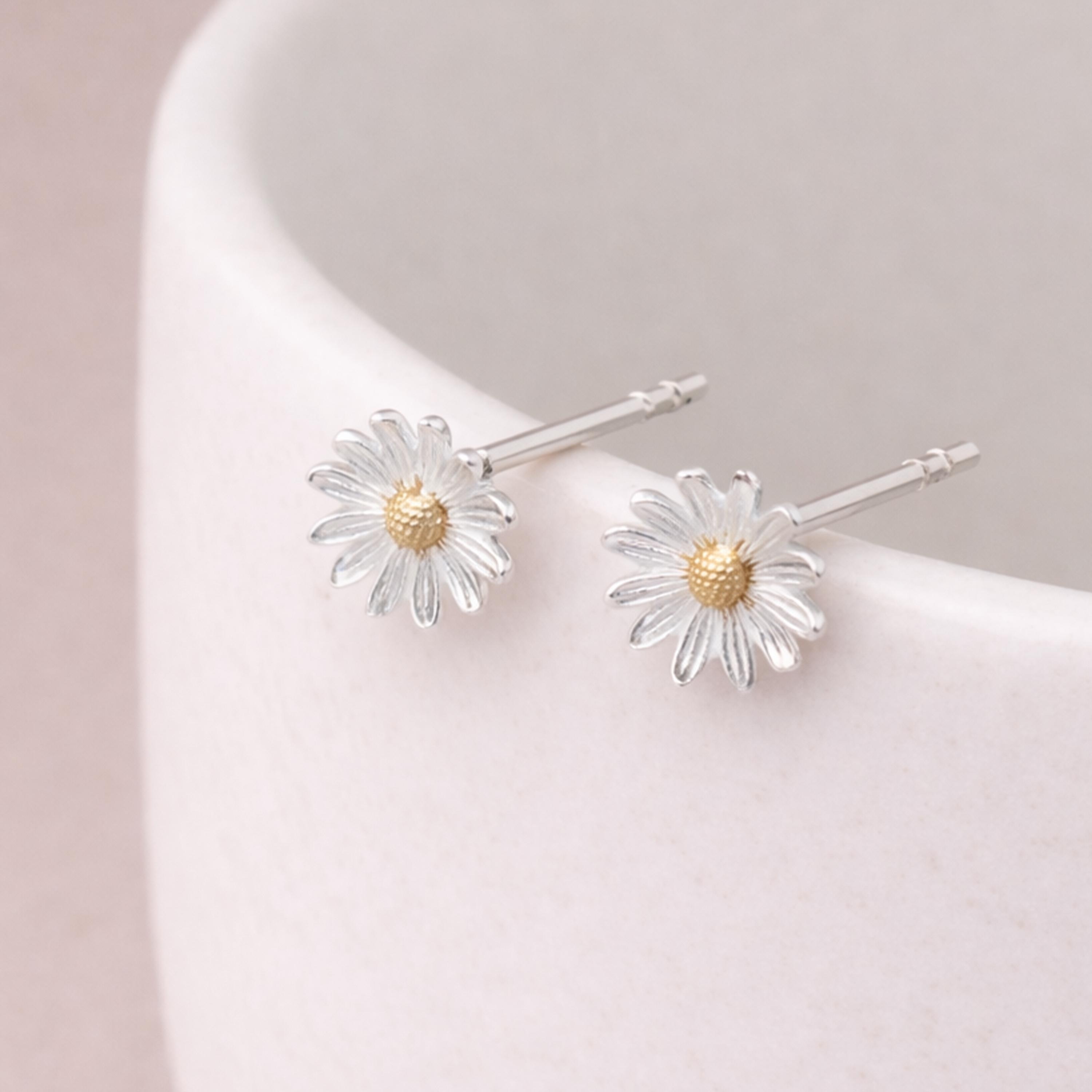 These daisy stud earrings are handcrafted from solid 925 sterling silver with an 18ct yellow gold centre, designed to capture the charm and simplicity of a classic daisy. Nickel free and hypoallergenic, they are gentle on sensitive ears and ideal for comfortable everyday wear.