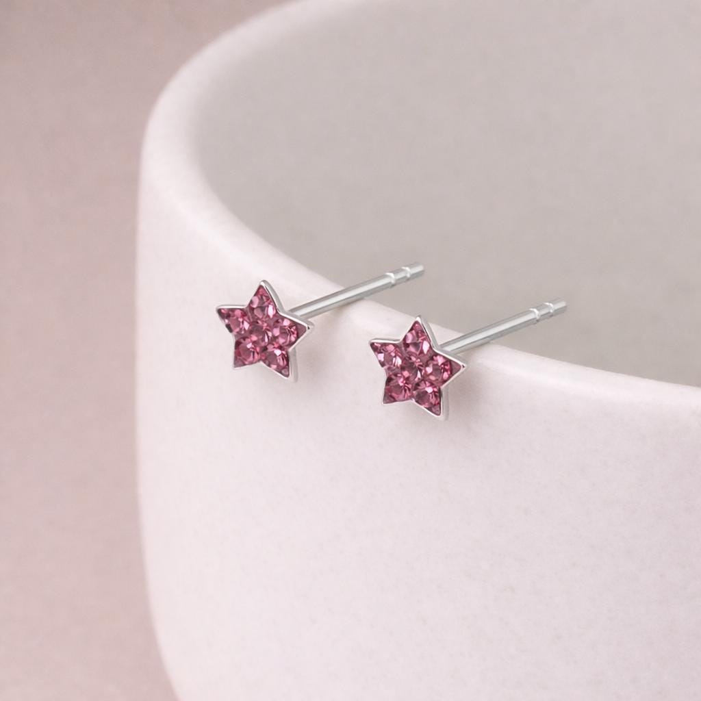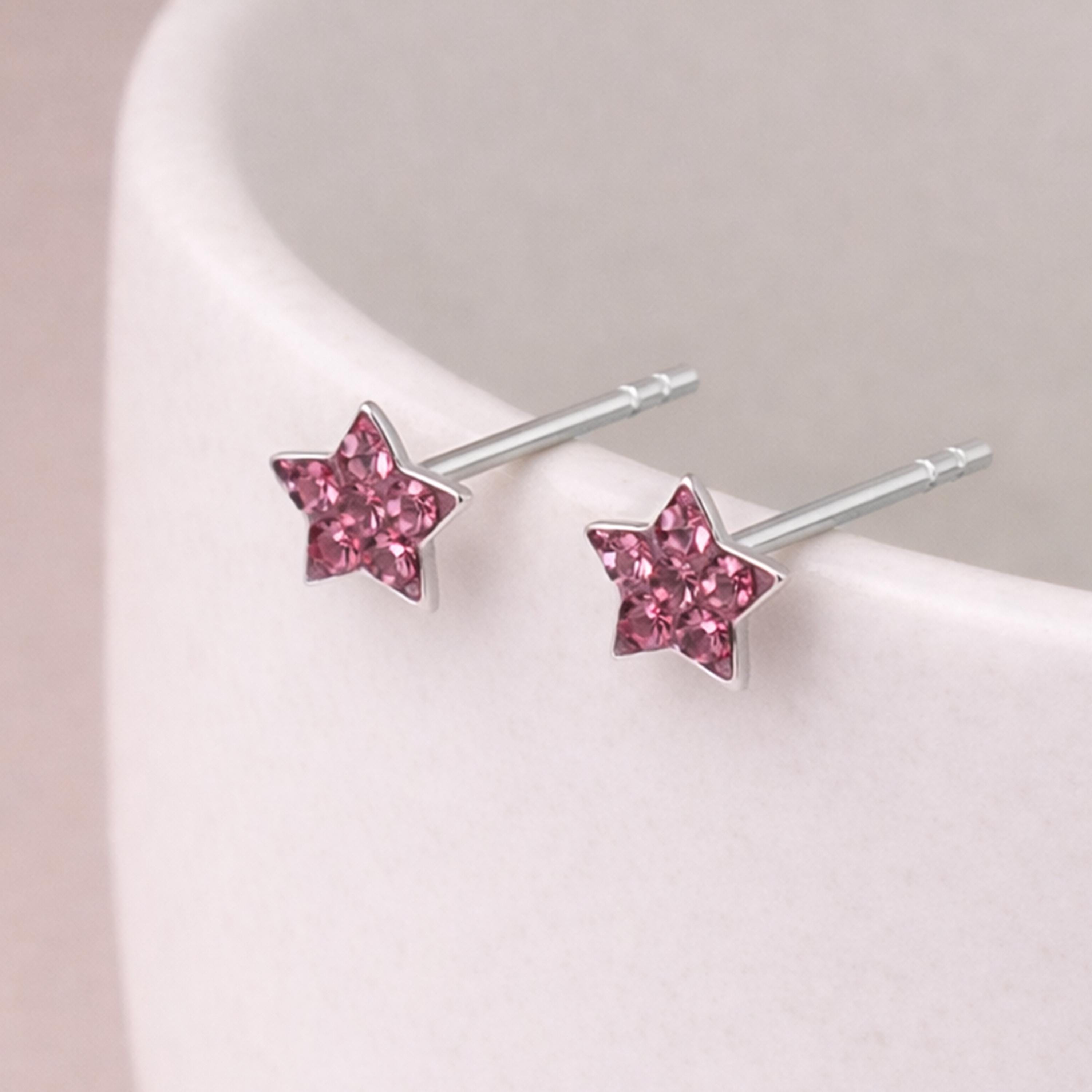 Each pair is carefully made by hand in our UK studio using traditional jewellery-making techniques. The star shapes are neatly finished in polished silver, with the pink cubic zirconia stones set closely together to maximise sparkle and colour.