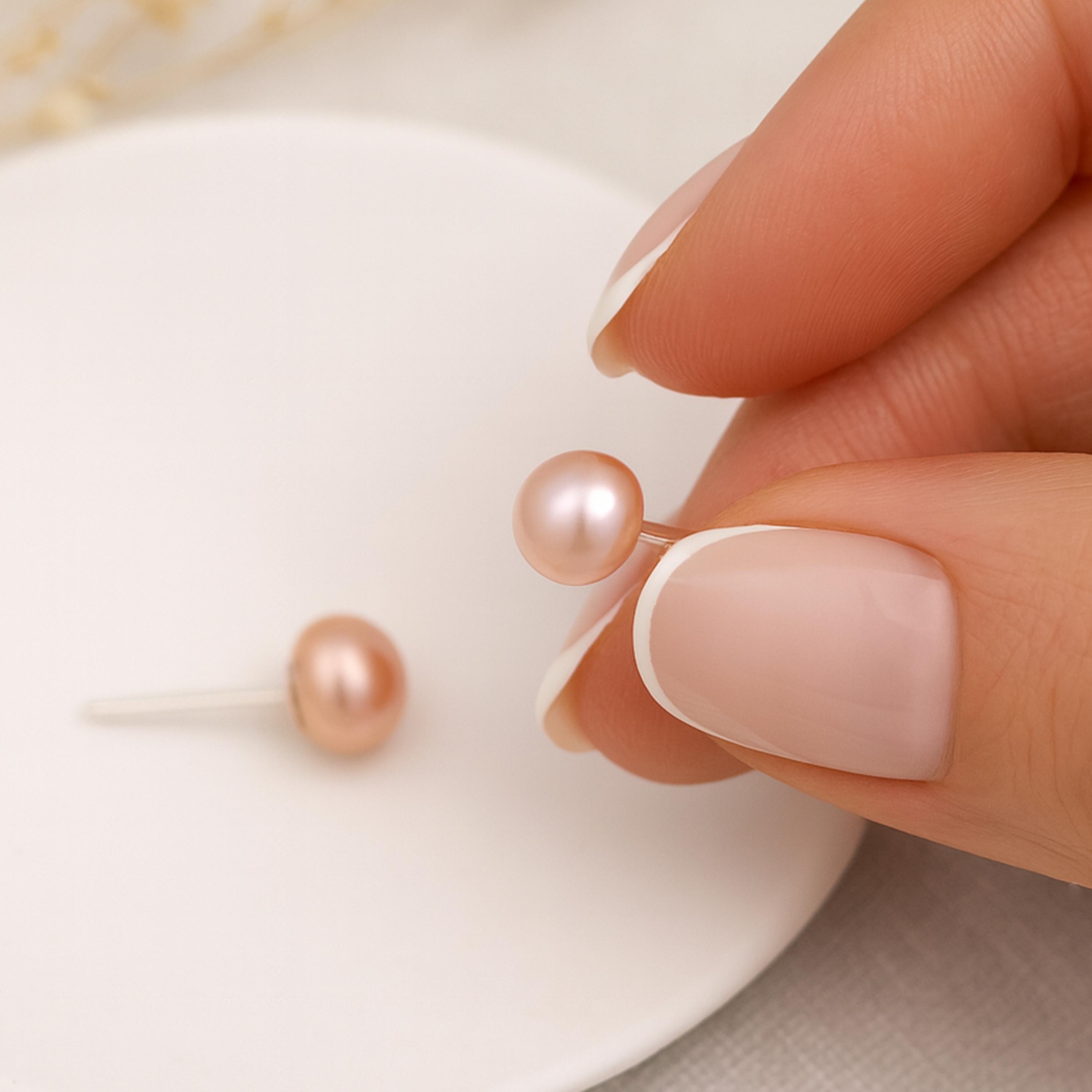 Soft, subtle and super elegant — these blush pink pearl studs are a beautiful twist on a timeless classic. Made from natural freshwater pearls and set on sterling silver posts, they’re perfect for weddings, gifting or just adding a soft glow to your everyday look.
