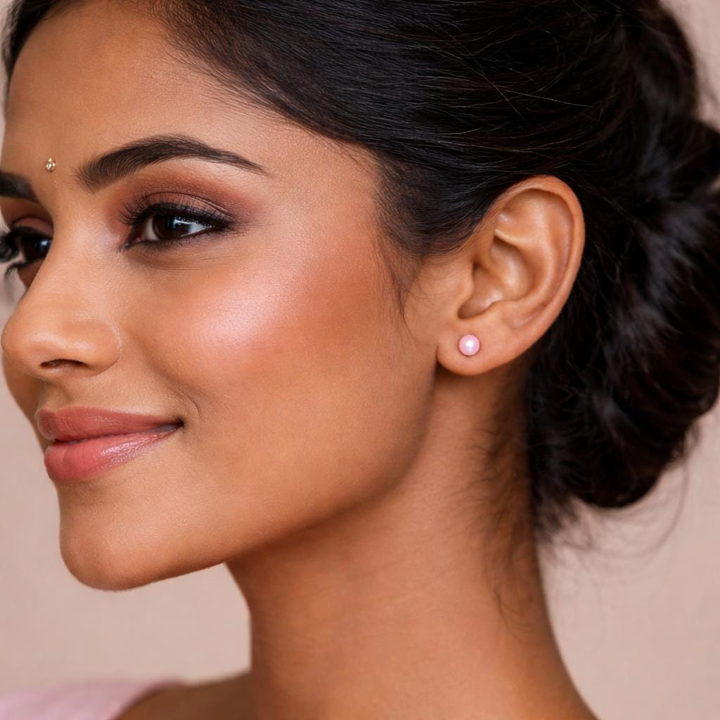 These blush pink freshwater pearl stud earrings are handcrafted from solid 925 sterling silver and finished with genuine blush pink freshwater pearls, chosen for their soft lustre and natural beauty. Nickel-free and hypoallergenic, they are gentle on sensitive ears and perfect for everyday wear.