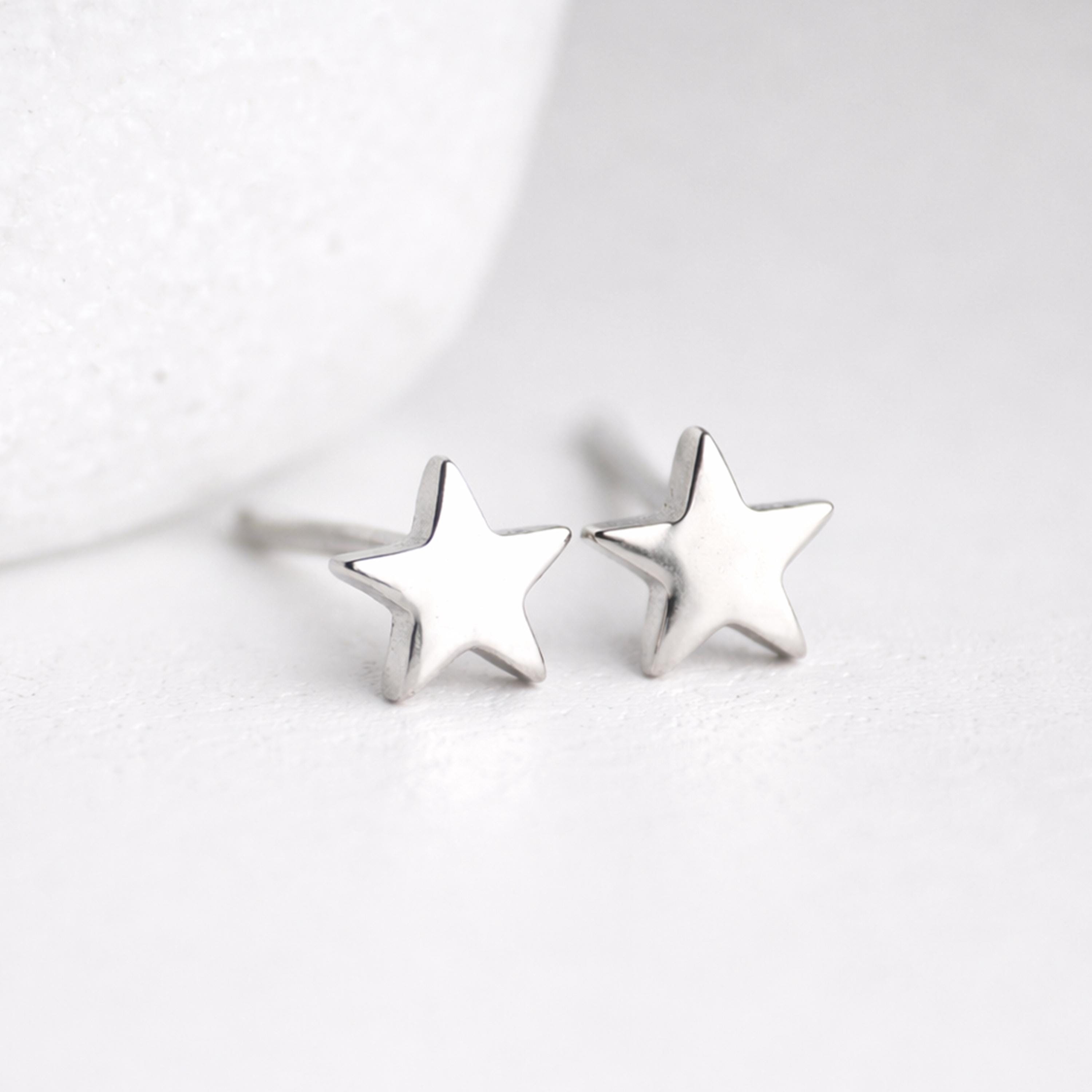 These tiny sterling silver star stud earrings are handcrafted from solid 925 sterling silver and finished with a smooth, polished surface for a clean, timeless look.
