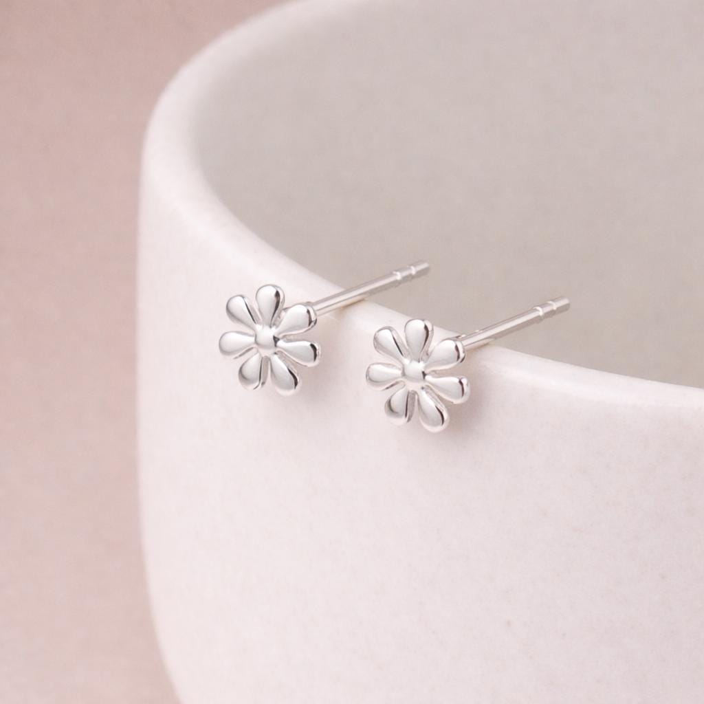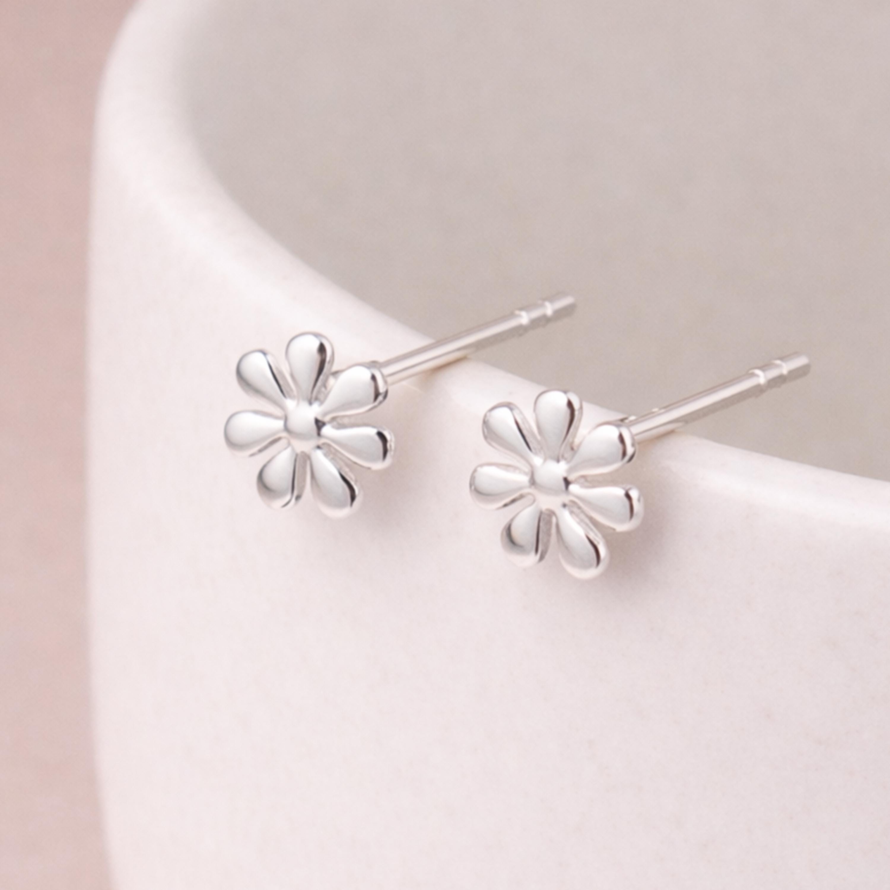 These sterling silver daisy stud earrings are handcrafted from solid 925 sterling silver and finished with a smooth, polished surface, creating a cheerful floral design that is easy to wear every day.