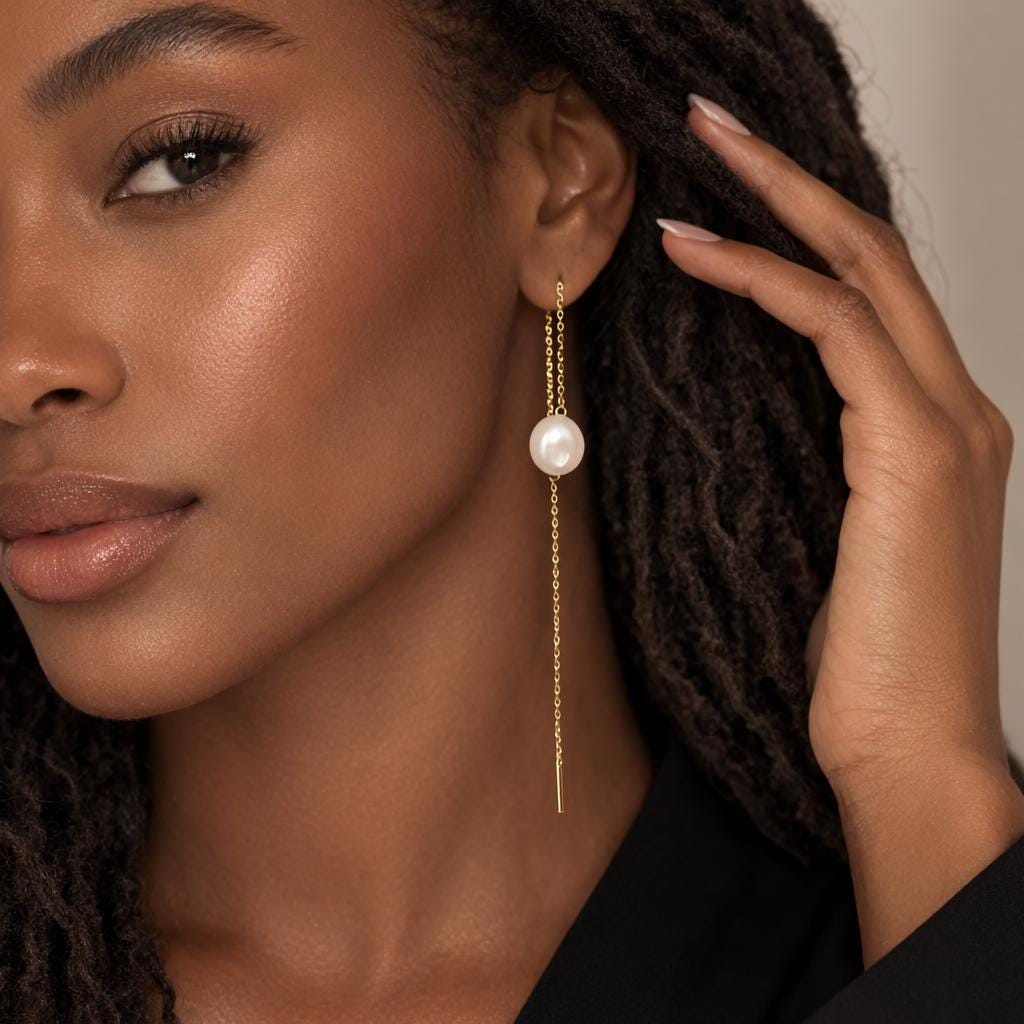 ♡ Style Tip: Wear these threader earrings with hair swept back or in a sleek updo to highlight their elegant length, or pair them with a simple gold necklace to create a refined, coordinated look.