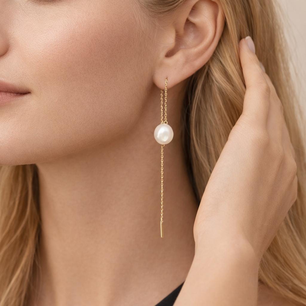 Perfect as gold pearl threader earrings, modern pearl drop earrings, bridal jewellery, June birthstone earrings, or elegant evening accessories, this design blends timeless pearls with contemporary style.