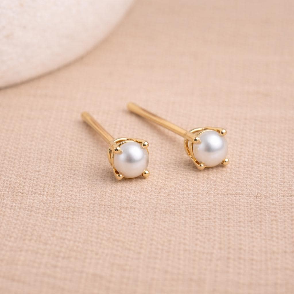 These freshwater pearl stud earrings are crafted from solid 9ct yellow gold and set in a classic claw setting, creating a soft luminous finish in a warm yellow gold tone. Each 4.00mm pearl is carefully secured to showcase its natural lustre and gentle glow.