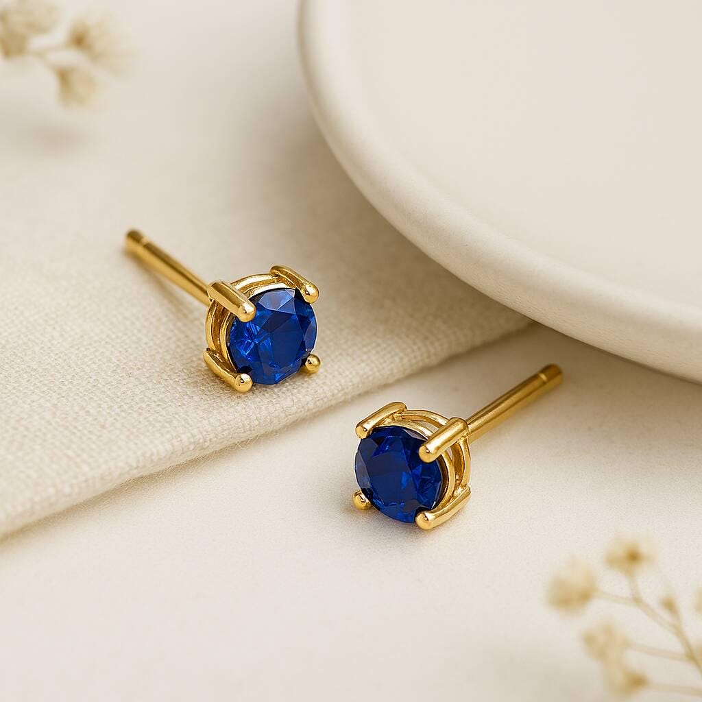 Solid 9ct yellow gold studs with natural sapphires — a timeless design inspired by the September birthstone, perfect for everyday wear or gifting.