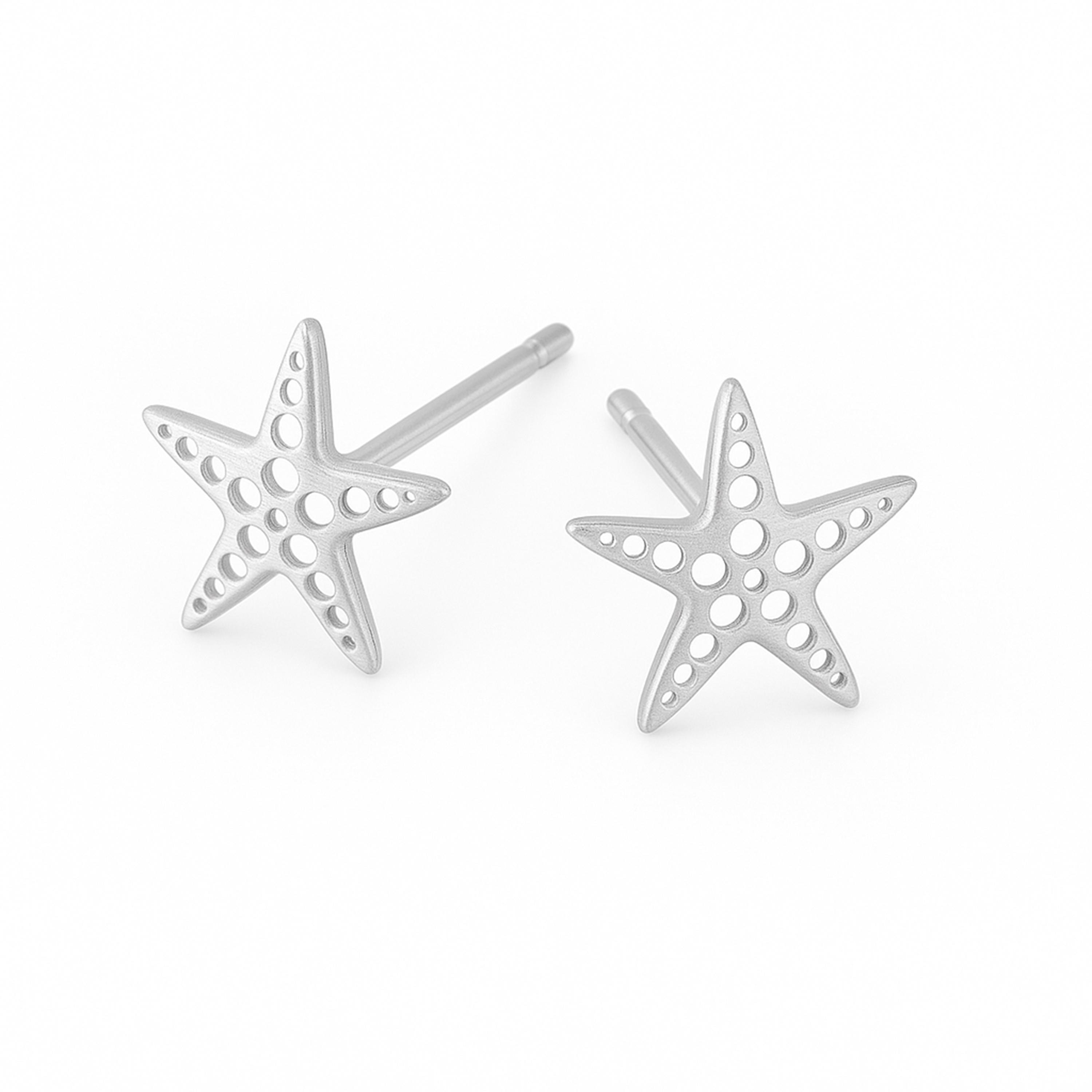 Sterling silver starfish studs — a coastal-inspired design with playful dot cut-outs.