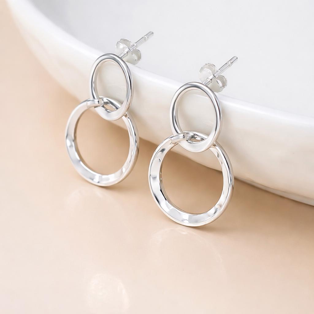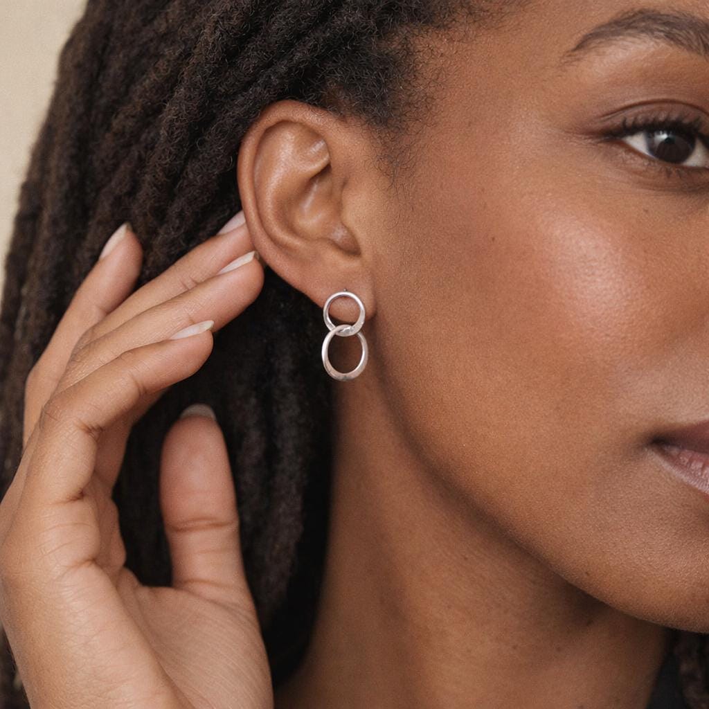 Each pair is carefully handmade, with the circles individually formed and lightly textured to catch the light from every angle. The linked circles symbolise connection, unity, balance, and enduring bonds, making these earrings a meaningful yet understated piece that works beautifully for both everyday wear and special occasions.