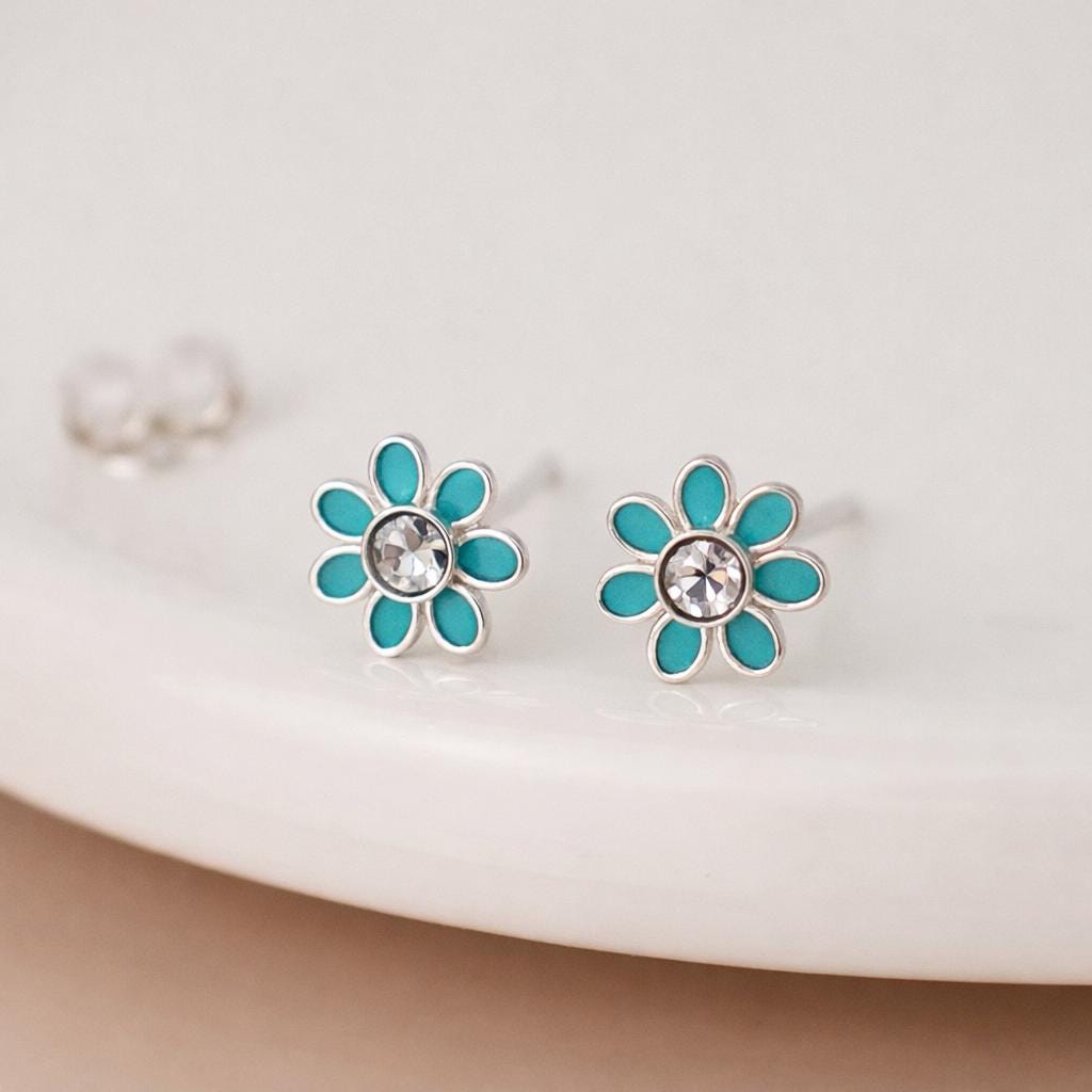 Each pair is made by hand using traditional jewellery-making techniques. The enamel is carefully applied to create smooth, vibrant petals, while the cubic zirconia is set by hand to catch the light beautifully. The silver is then polished to a refined finish, with subtle variations that make each pair unique.