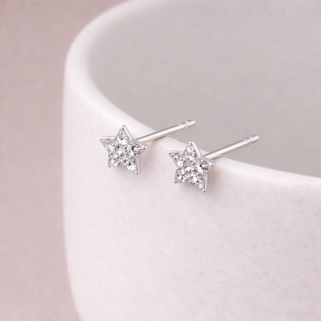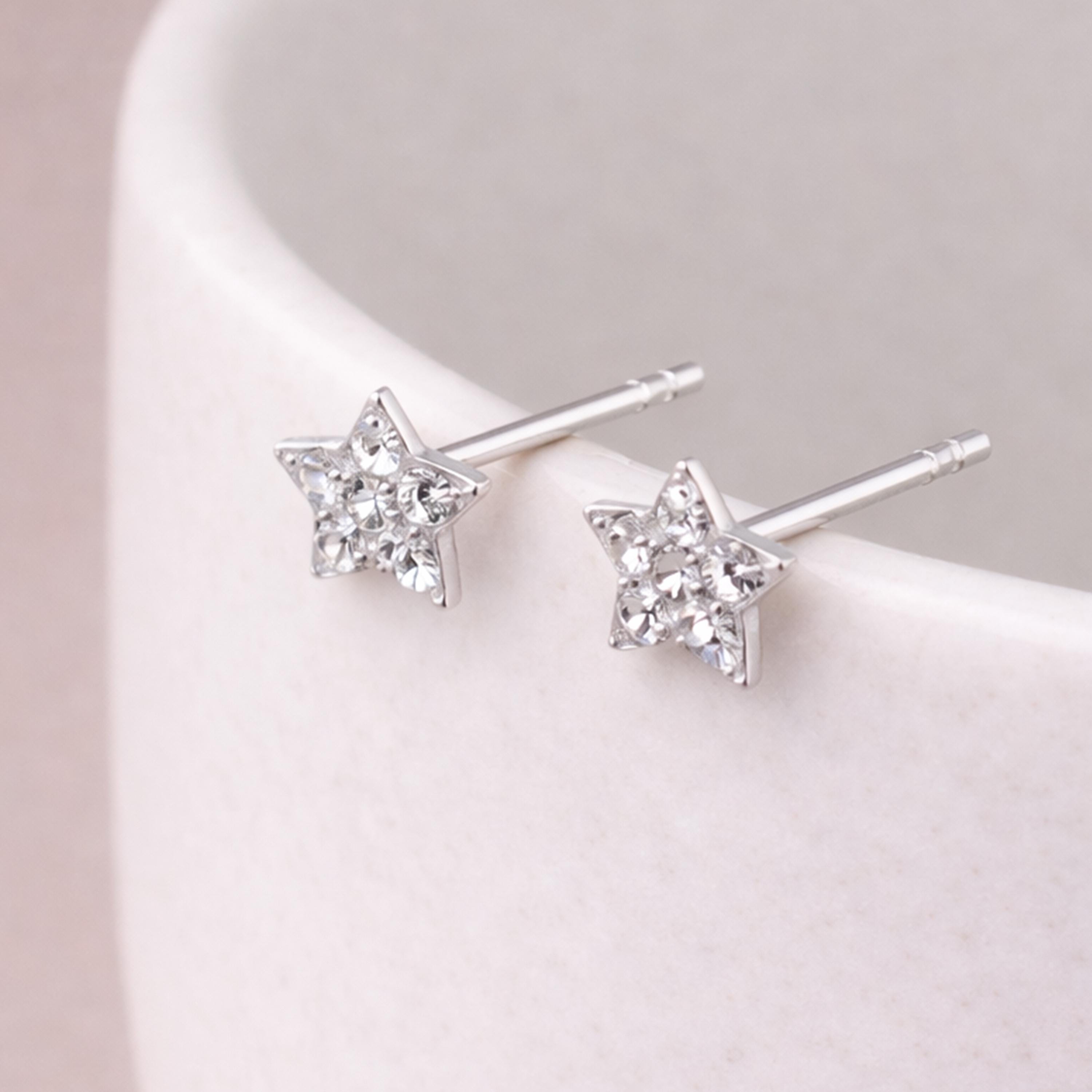 These crystal star stud earrings are handcrafted from solid 925 sterling silver and set with sparkling clear cubic zirconia, creating a delicate star design with beautiful light catching detail.