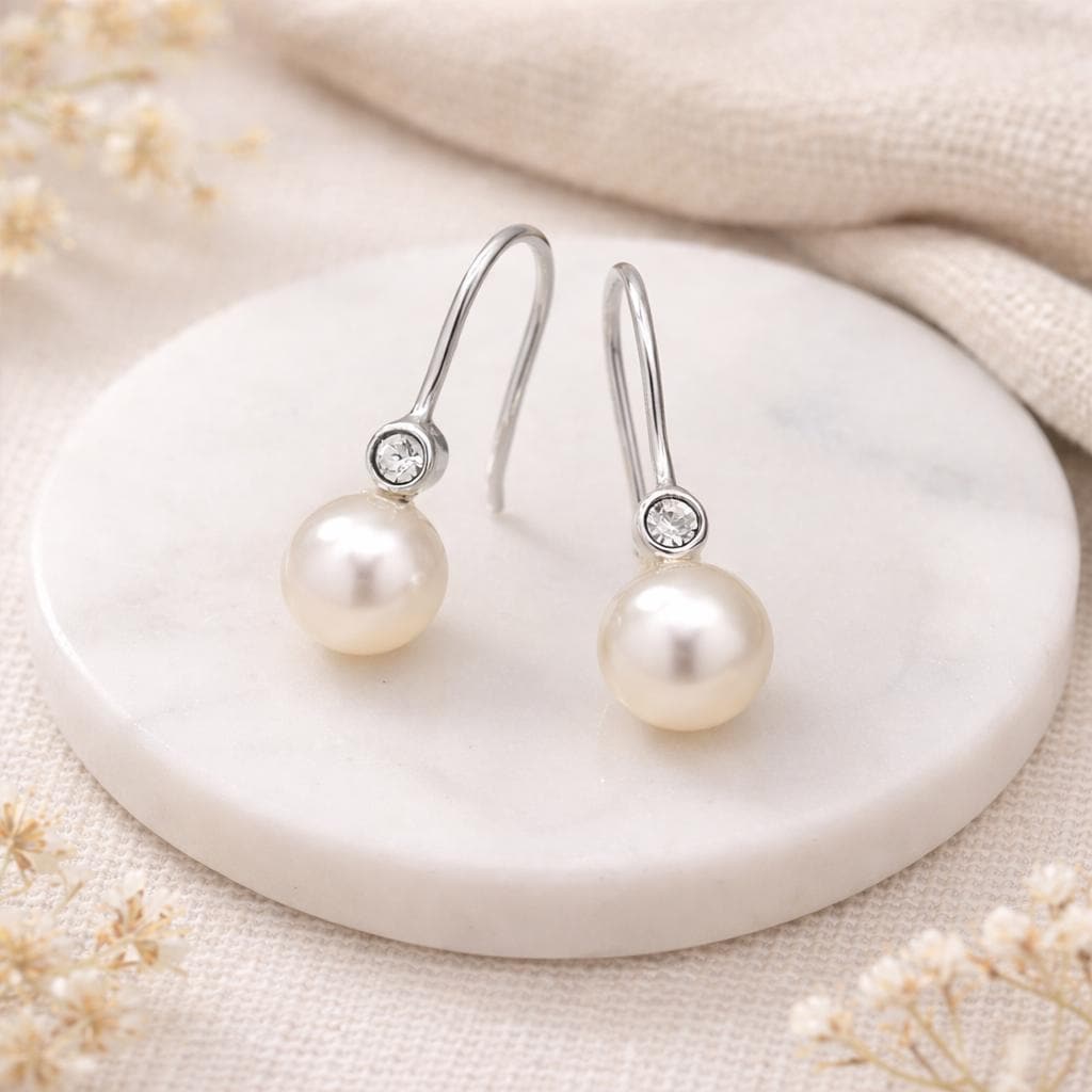 Crafted from solid 925 sterling silver, each earring combines a smooth 6mm pearl with a subtle cubic zirconia detail that catches the light beautifully. Pearls are the traditional June birthstone, symbolising purity, wisdom, and calm, making these earrings a thoughtful birthday gift or meaningful keepsake. The fine hook design keeps them lightweight and comfortable for all day wear.