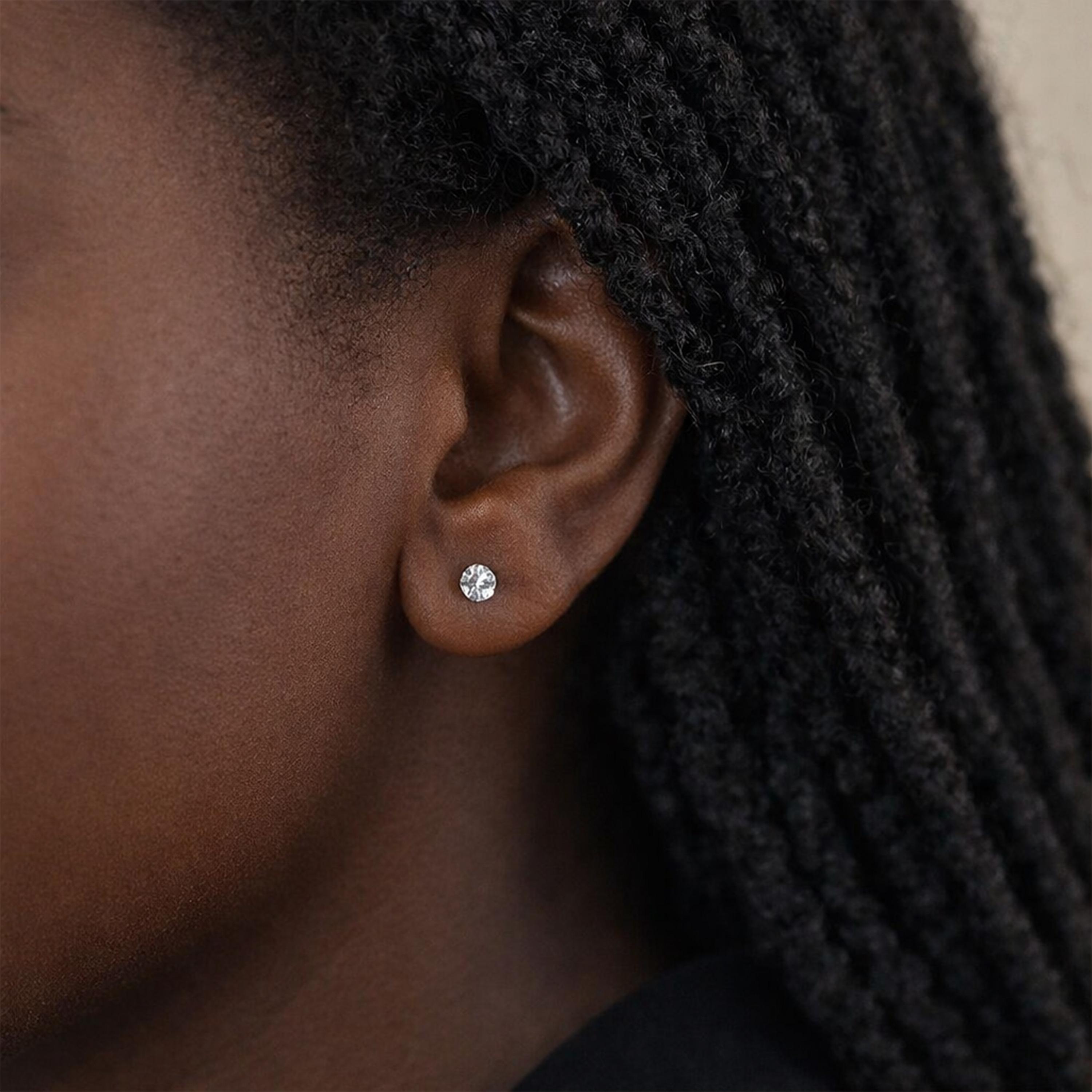 These April birthstone stud earrings are handcrafted from solid 925 sterling silver and set with a sparkling 4mm clear cubic zirconia, offering a timeless, minimalist design inspired by the brilliance of a diamond.