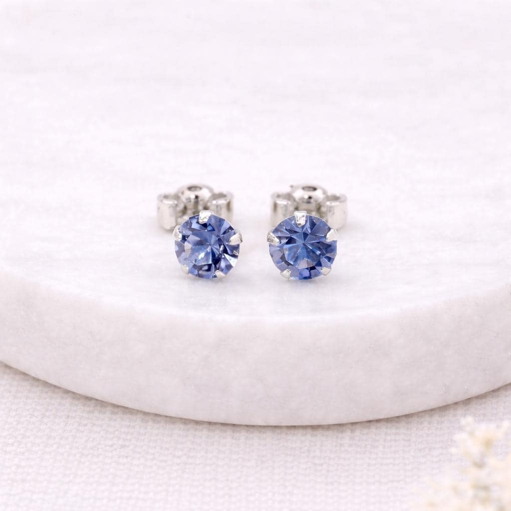 These sterling silver March birthstone stud earrings are handcrafted from solid 925 sterling silver, featuring a sparkling aquamarine coloured cubic zirconia in a simple, timeless setting.