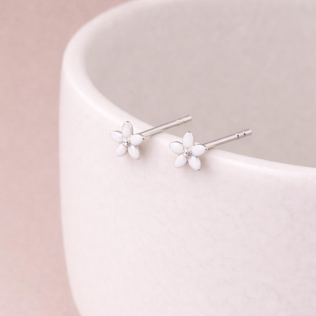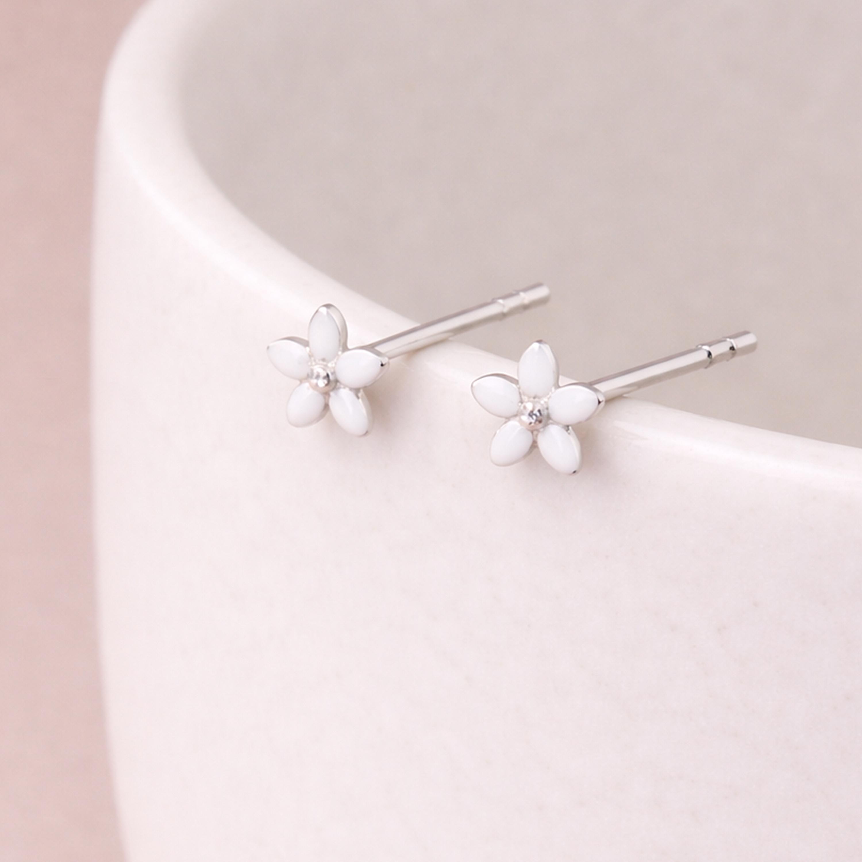 Each pair is made by hand in our UK studio using traditional jewellery-making techniques. The enamel is carefully applied to create a soft, glossy finish, while the silver is polished by hand to highlight the simple daisy shape. Subtle variations are part of the handmade process and make each pair uniquely special.