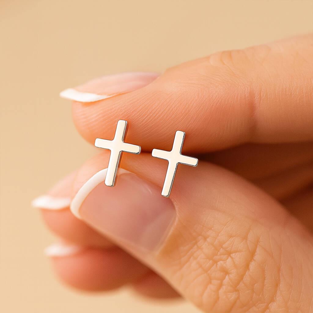 These cross stud earrings are handcrafted from solid 925 sterling silver, finished in a classic silver tone with a simple, polished design that suits everyday wear. Nickel-free and hypoallergenic, they are gentle on sensitive ears and comfortable to wear all day.