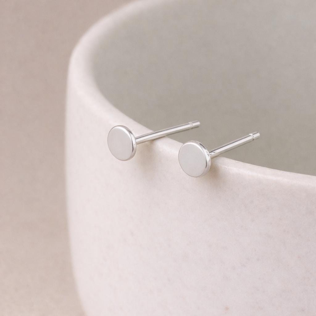 These tiny sterling silver disc stud earrings are handcrafted from solid 925 sterling silver and finished with a smooth, polished surface for a clean, minimalist look.