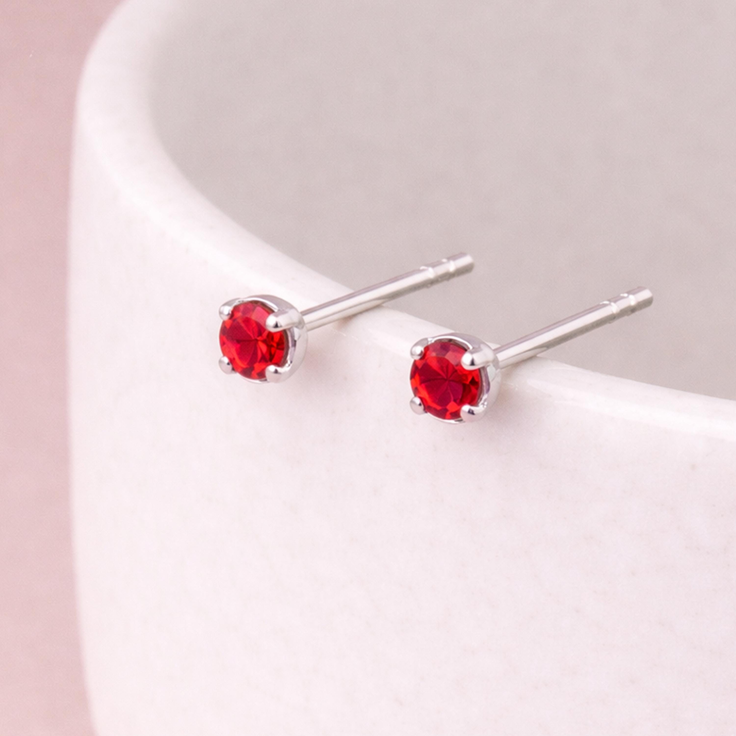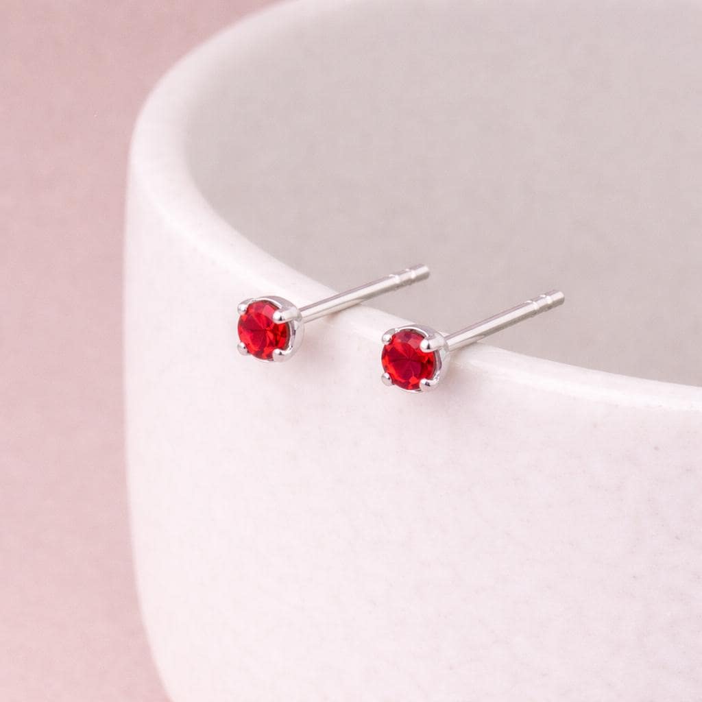 These ruby coloured stud earrings are crafted from solid 925 sterling silver and set with a vibrant ruby coloured cubic zirconia, designed to capture the rich red tone of ruby in a subtle, everyday style. Nickel-free and hypoallergenic, they are gentle on sensitive ears and comfortable to wear all day.