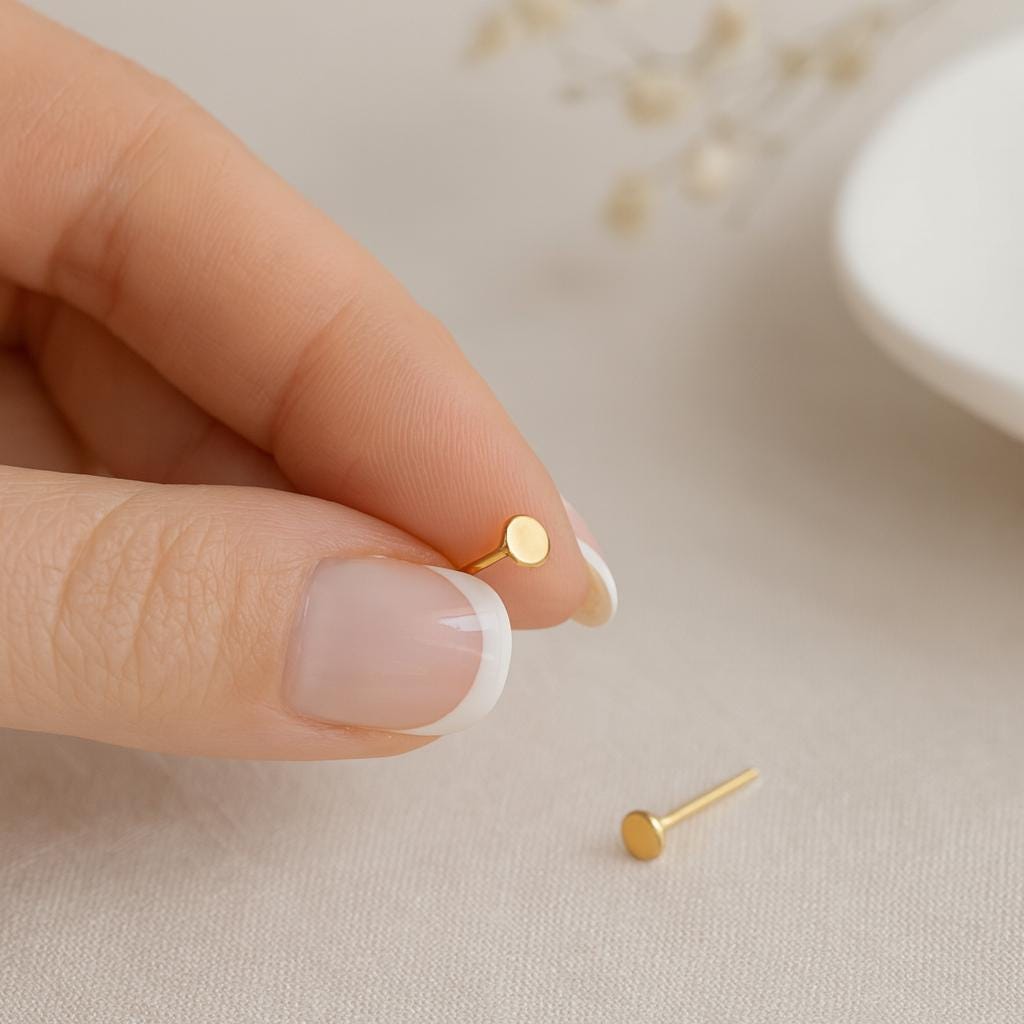 Micro gold-plated disc studs — perfect for stacking, second piercings, or children’s everyday wear.