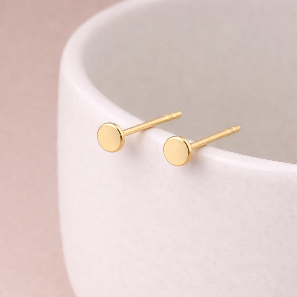 These gold disc stud earrings are handcrafted from solid 925 sterling silver with 18ct yellow gold plating, featuring a smooth, polished circular design that’s perfect for everyday wear. Nickel-free and hypoallergenic, they are gentle on sensitive ears and comfortable to wear all day.