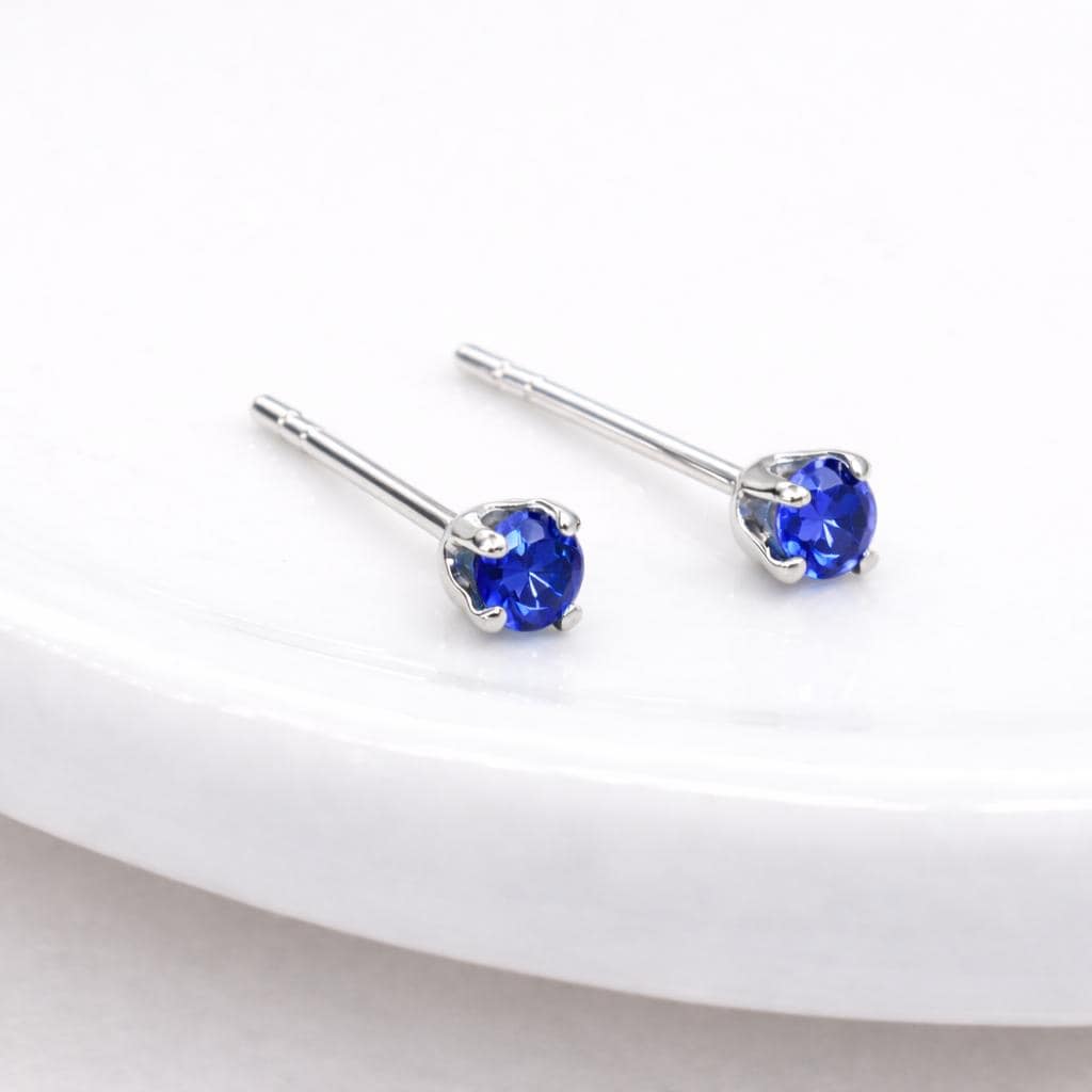 These sapphire coloured stud earrings are crafted from solid 925 sterling silver and set with a rich blue cubic zirconia, designed to capture the timeless look of sapphire in a delicate, everyday style. Nickel-free and hypoallergenic, they are gentle on sensitive ears and comfortable to wear all day.