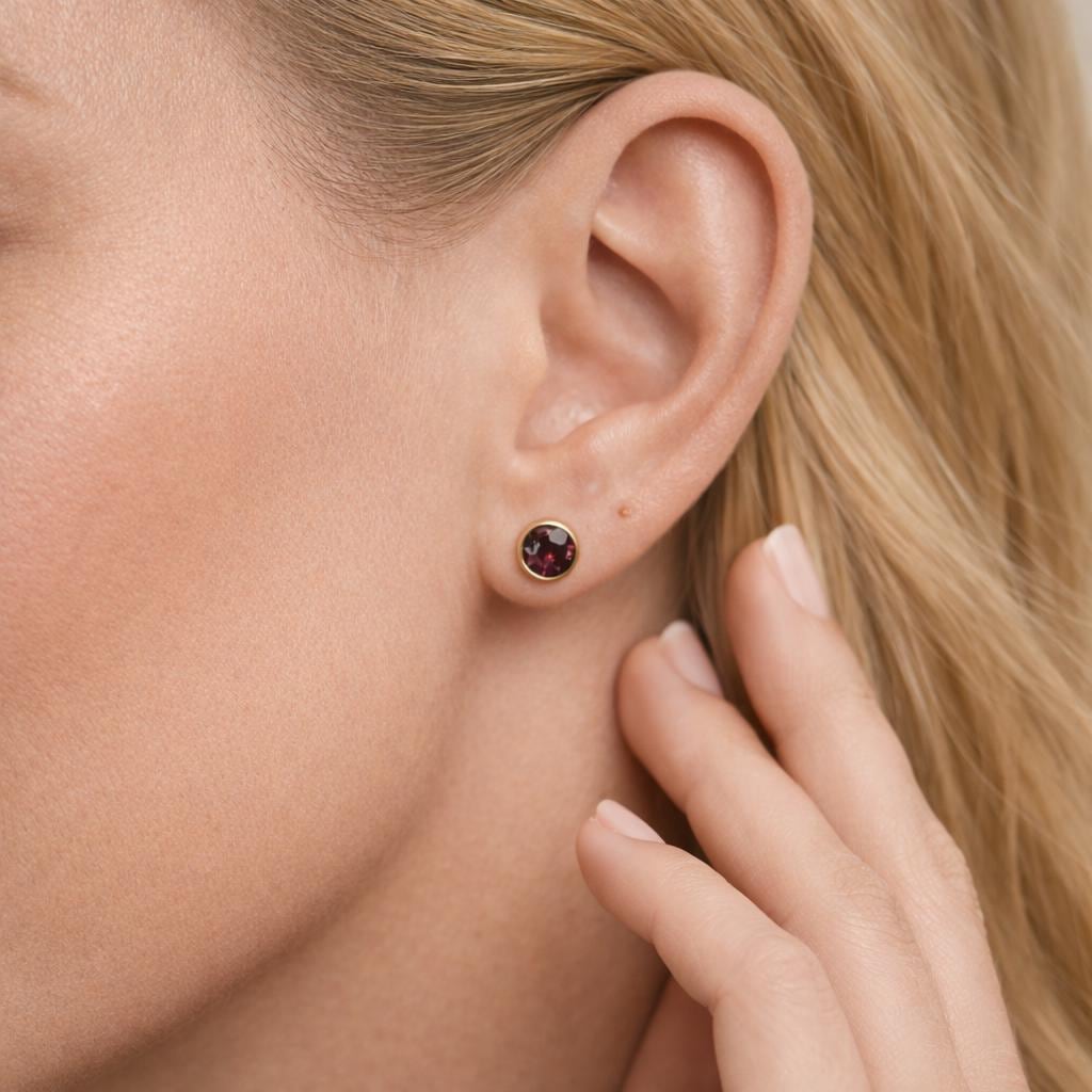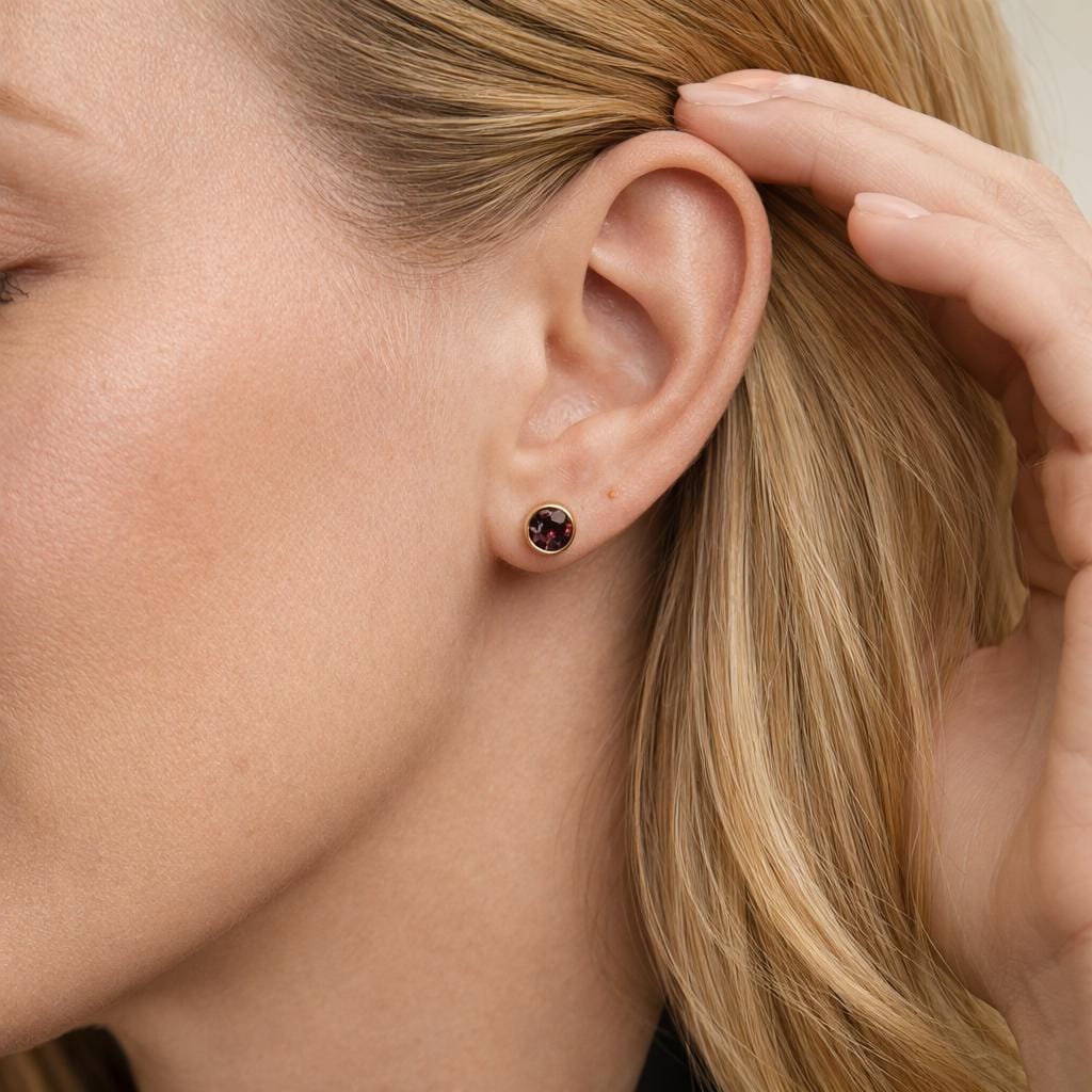 ♡ Style Tip: Perfect for everyday wear, these garnet-tone studs pair beautifully with simple outfits and other gold or mixed-metal jewellery.