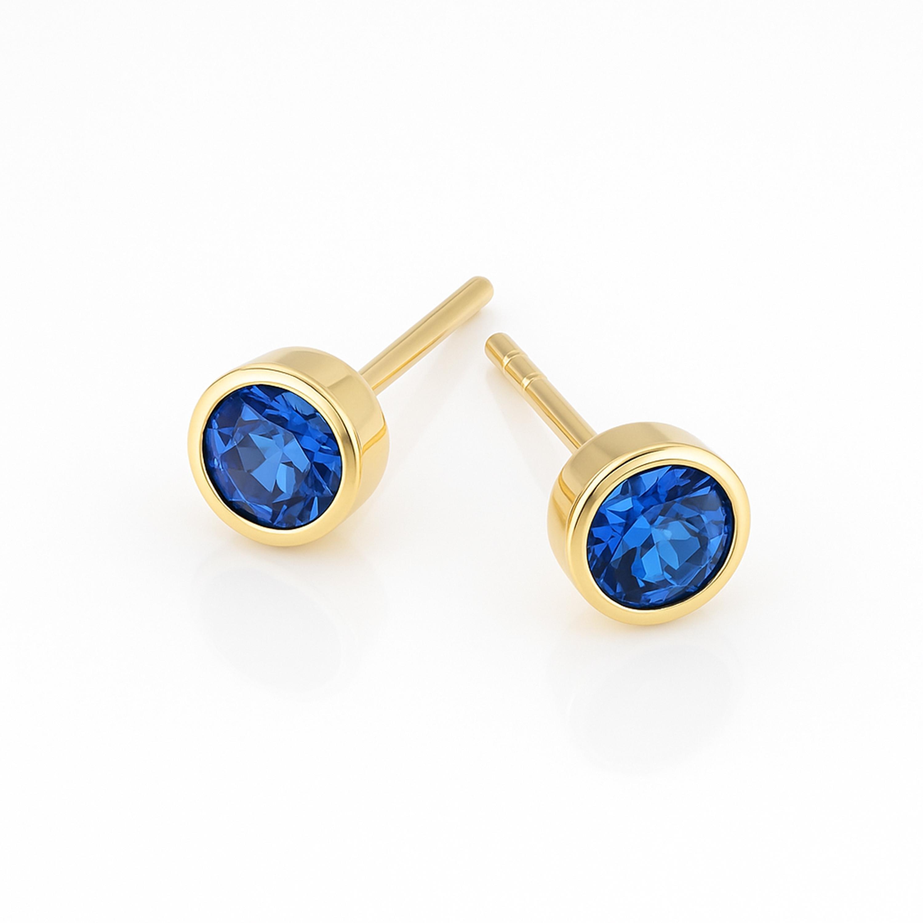 Gold-plated sterling silver studs with deep blue sapphire-inspired cubic zirconia — a timeless design celebrating the September birthstone.