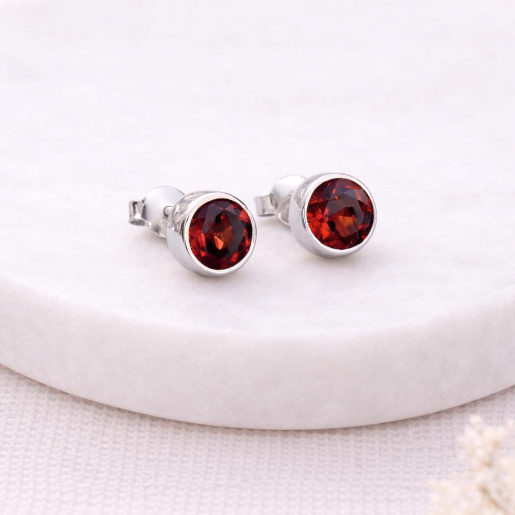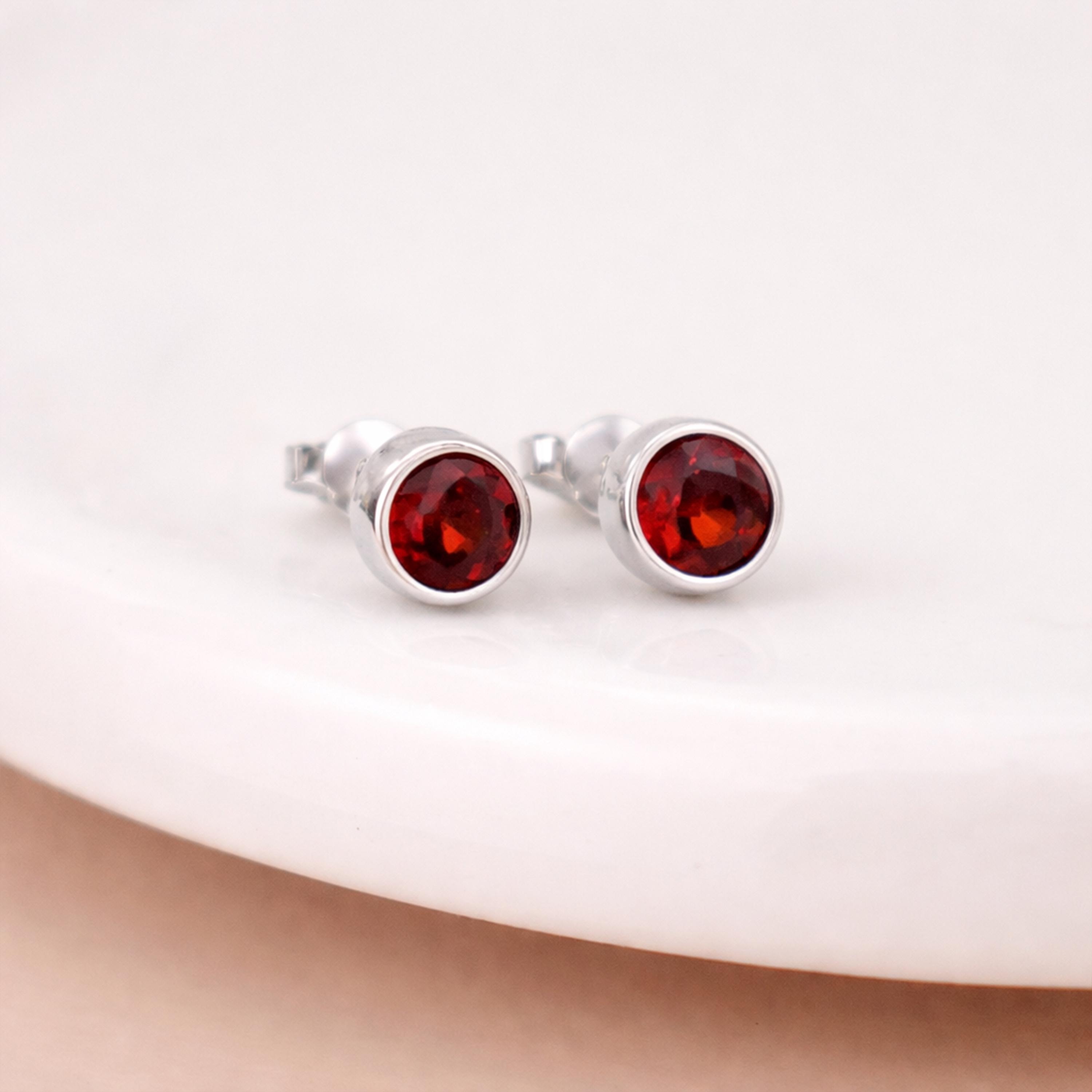These sterling silver garnet red stud earrings are crafted from solid 925 sterling silver and set with deep garnet coloured cubic zirconia, creating a timeless and elegant design that works beautifully for everyday wear.