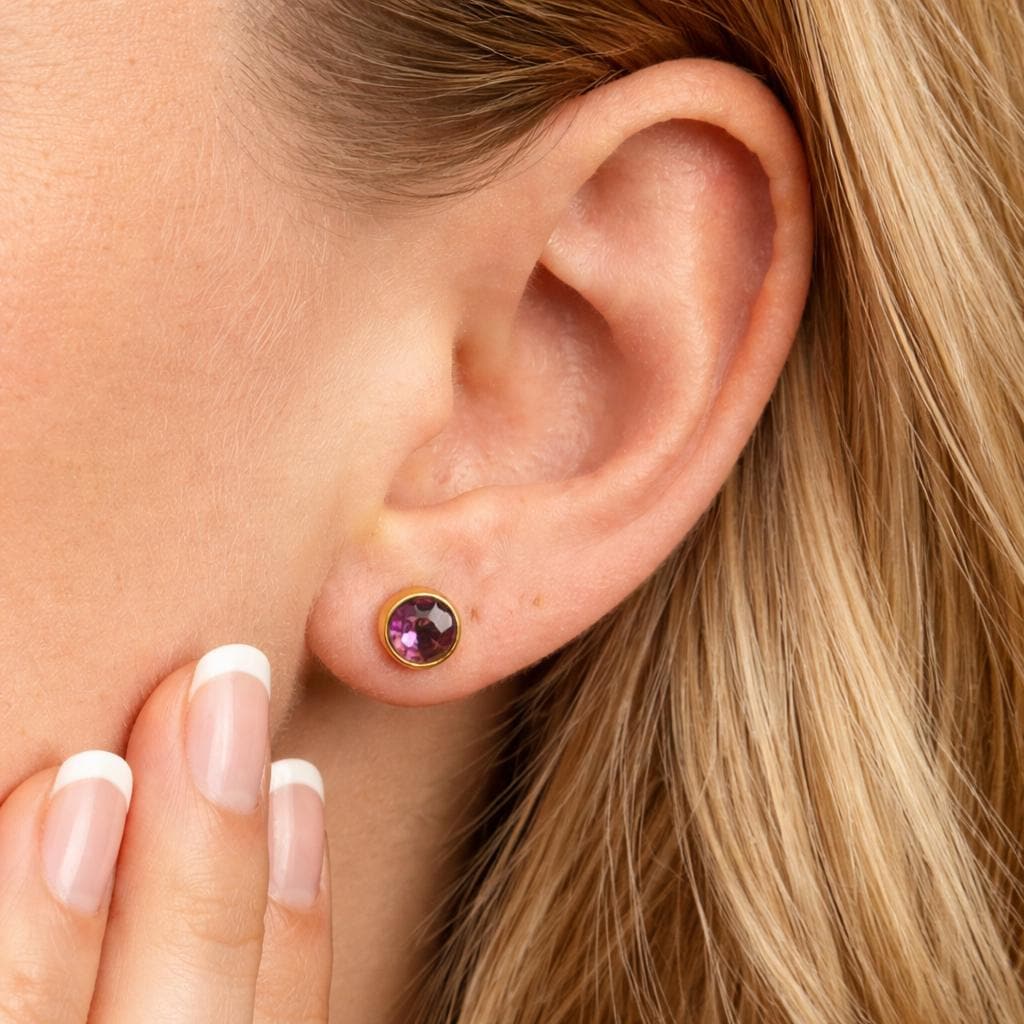 ♡ Style Tip: These amethyst tone studs look beautiful with neutral outfits, evening wear, or soft knitwear, adding a touch of colour and quiet elegance.
